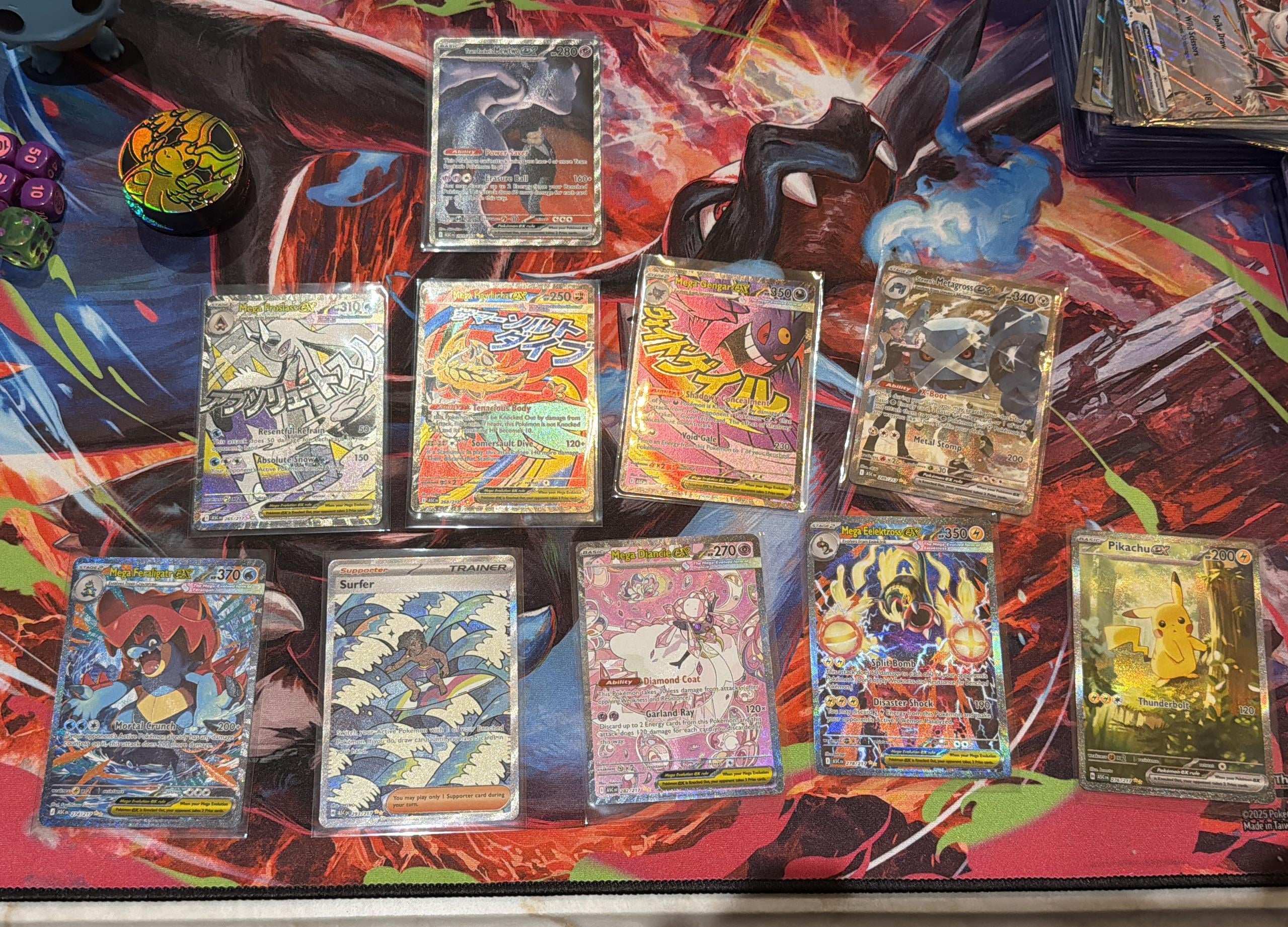 Got back into Pokémon this past year. Been ripping here and there. Went to GameStop yesterday and told the cashier to pick one for me. He closed his eyes and pointed to a random box and it was the same box I had picked out in my head. Later that night me and my GF were ripping packs. I ripped one and the back was facing her and she said, “Oh the hits are on the front, that’s cool.” I paused for a second but knew she wasn’t messing with me because she has no idea lol. Then boom. First god pack ever. Still can’t believe it. Sadly my chase card was the Dragonite. So I’m selling everything besides the pika and mewtwo and I’m gonna buy the Dragonite and be done with ascending.