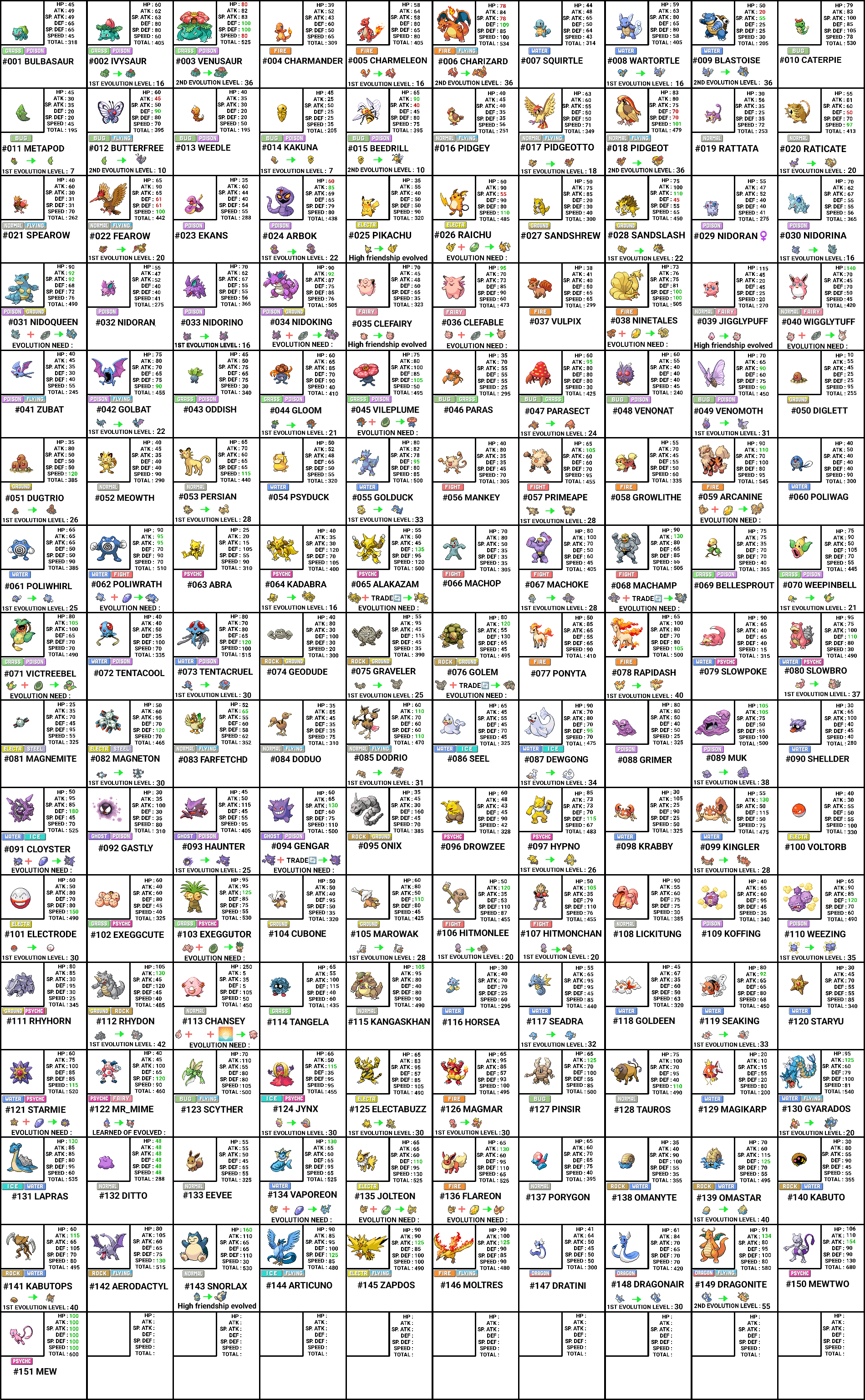Complete pokemon stats , evolutions , types in generation 1 [ OC ] by AngeloNielo