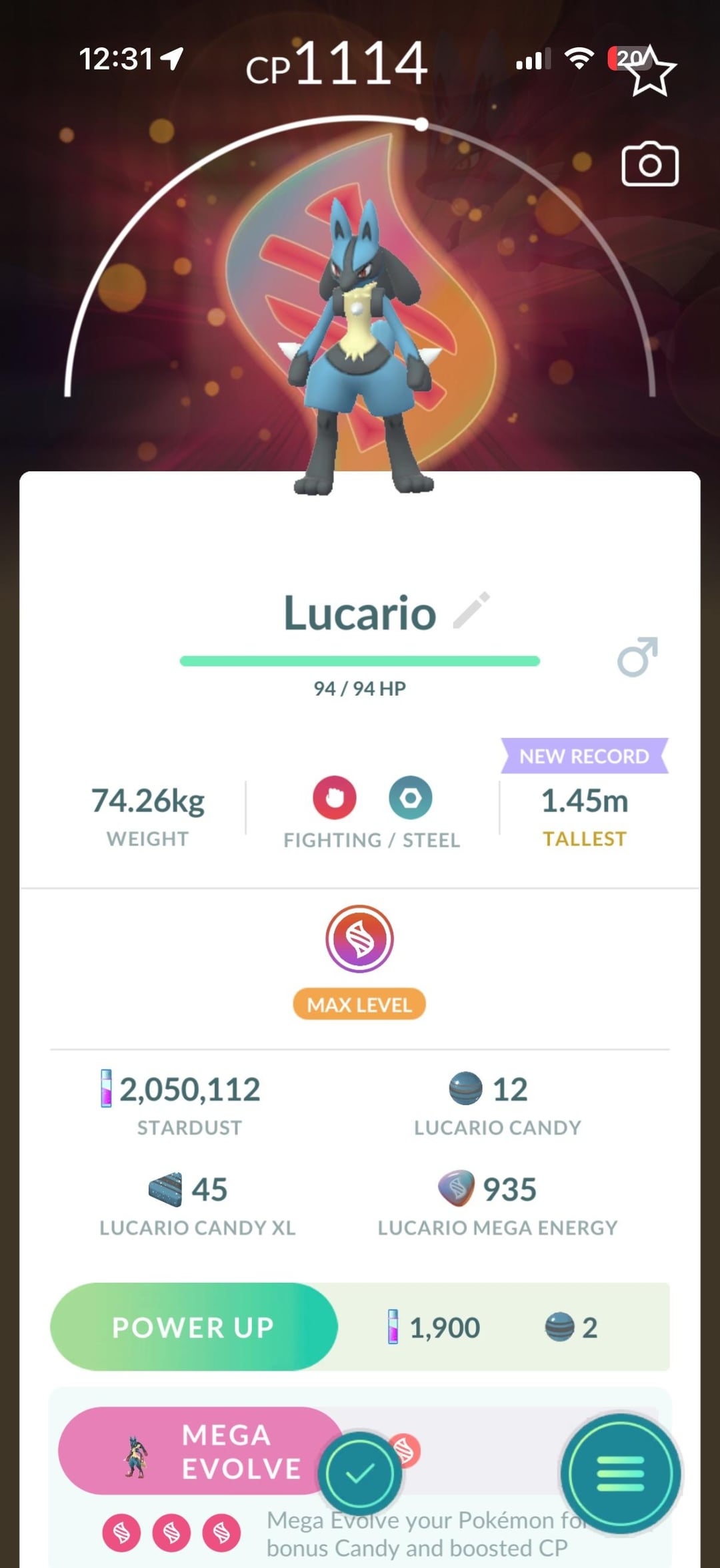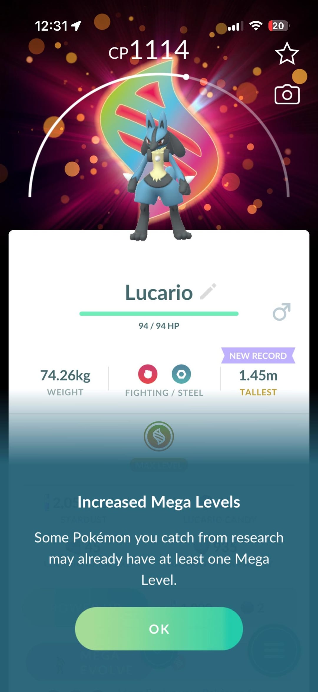 Confirmed Lucario from level 100BP has background and max mega level