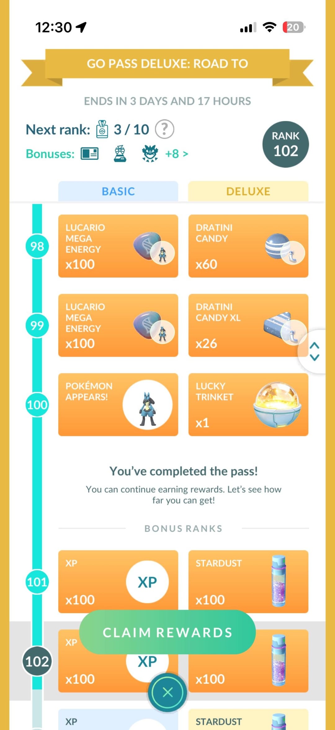 As title says, I just got level 100bp and the Lucario has a background and is max mega level off the bat.