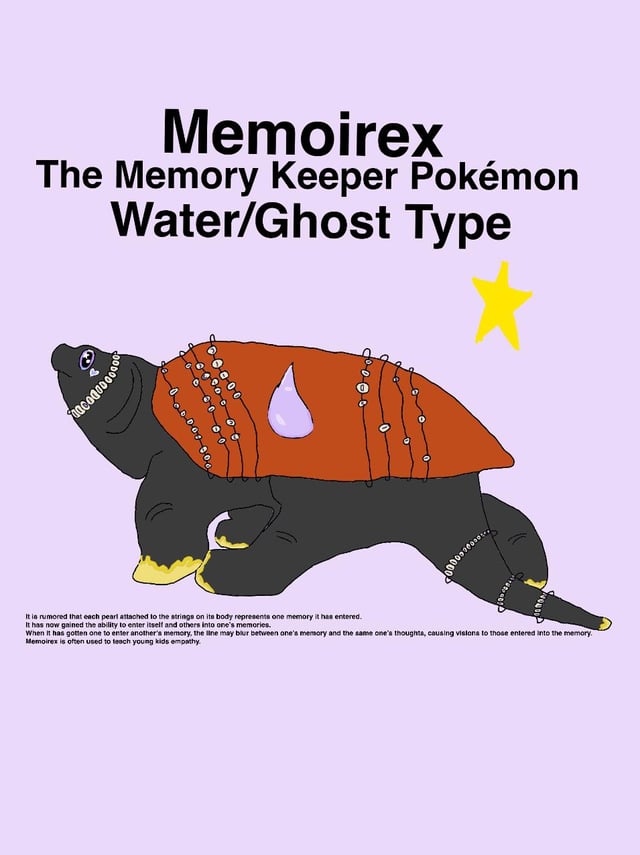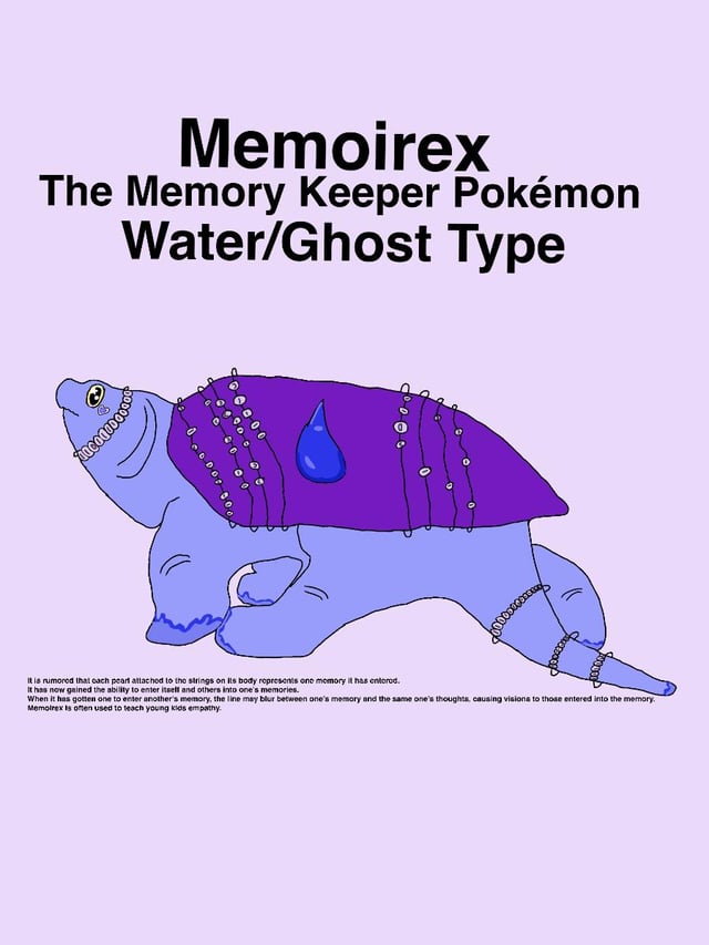 Pokédex: “It is rumored that each pearl attached to the strings on its body represents each memory it has entered. It has now gained the ability to enter itself and others into one's memories. When it has gotten one to enter another's memory, the line may blur between one's memory and the same one's thoughts, causing visions to those entered into the memory. Memoirex is often used to teach young kids empathy.”