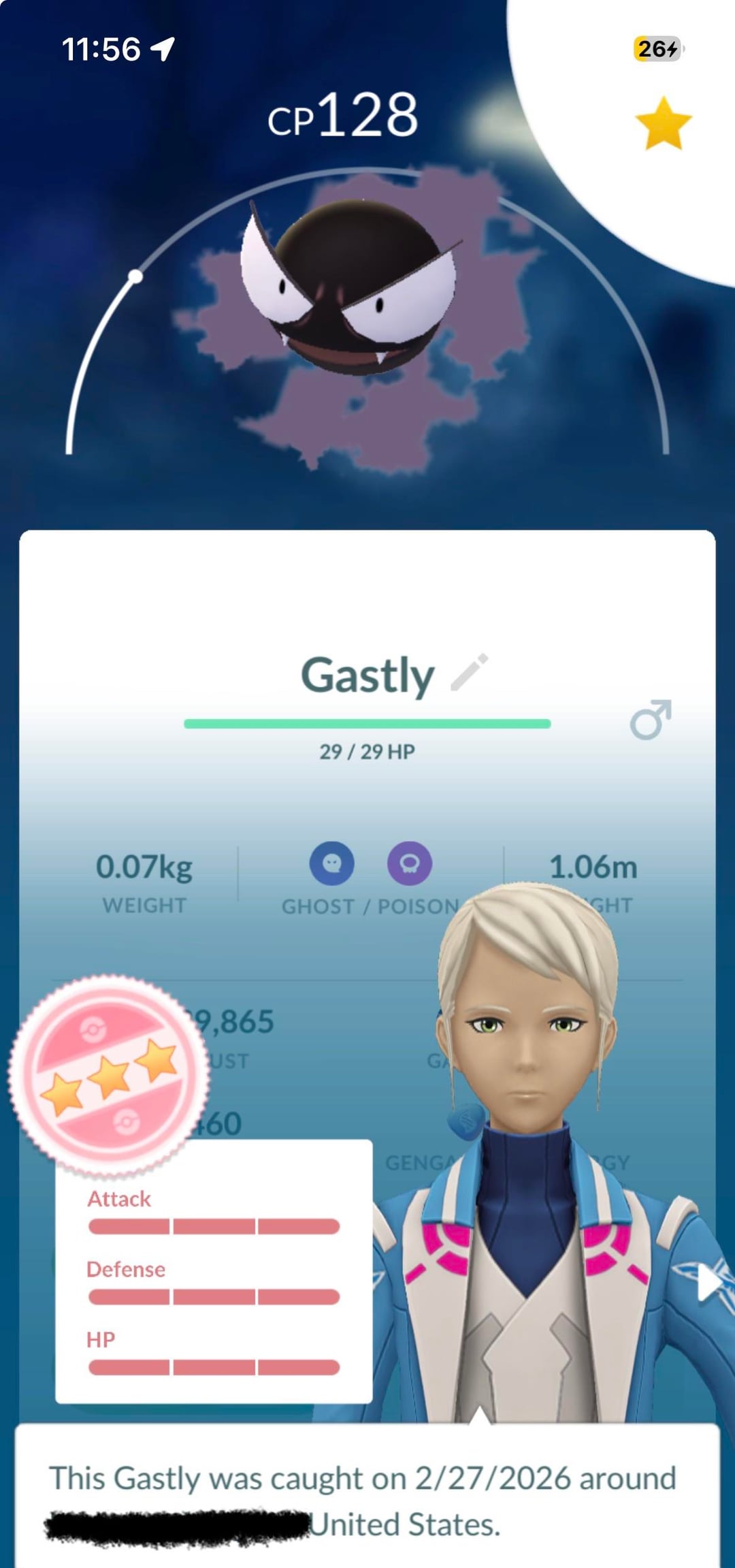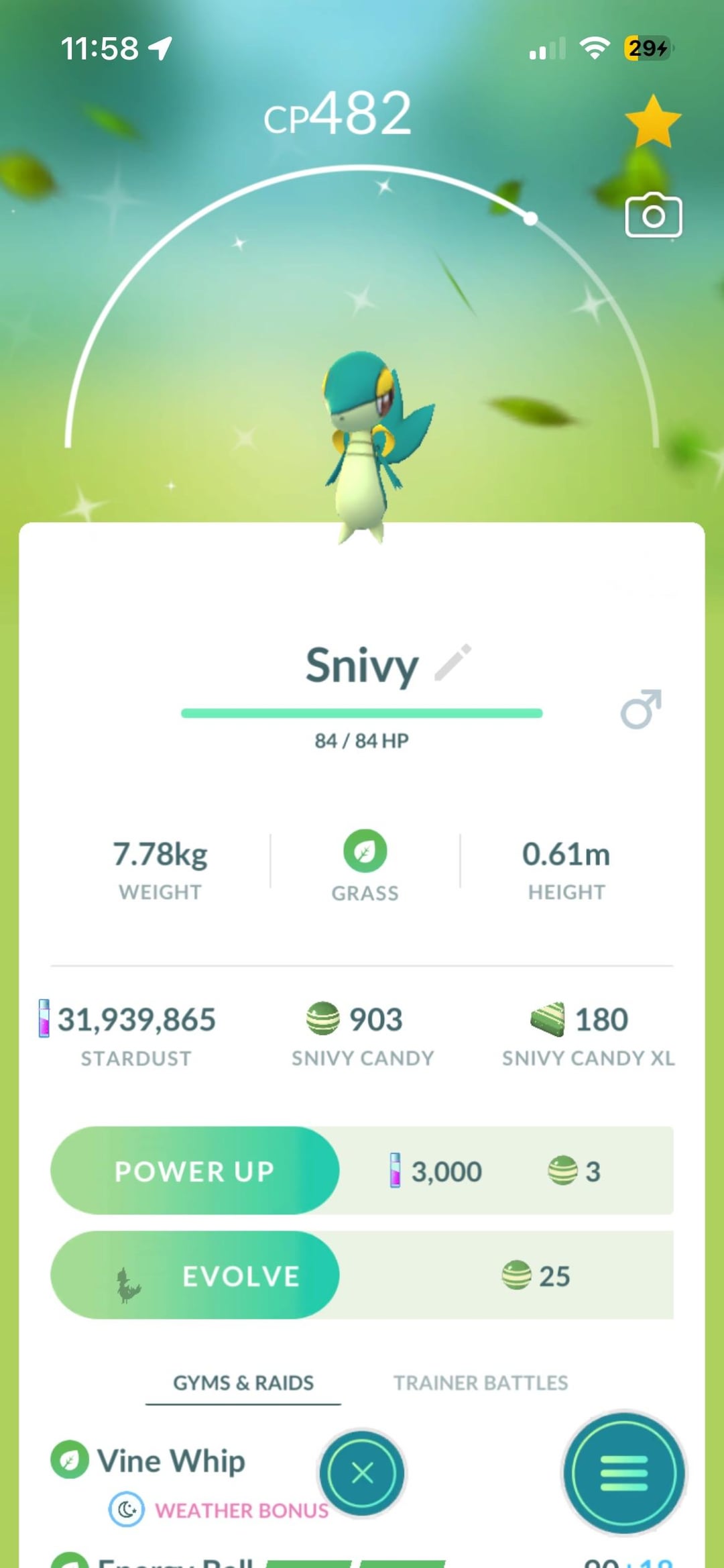 I hatched Popplio from the free daily egg. Gastly was hangin out by the church. Snivy earned me a Pokédex entry. It was a good day.
