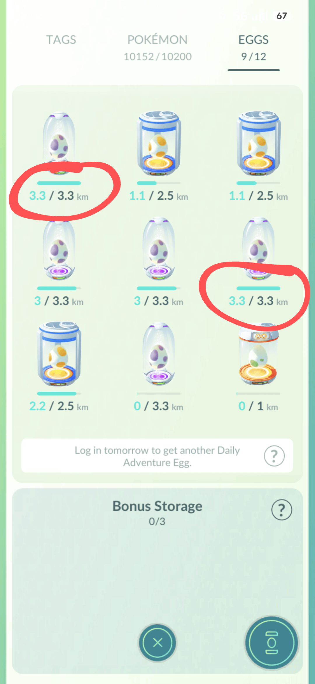 These eggs have hit their walking distance, but haven't hatched yet. Is this a bug or a rounding error?