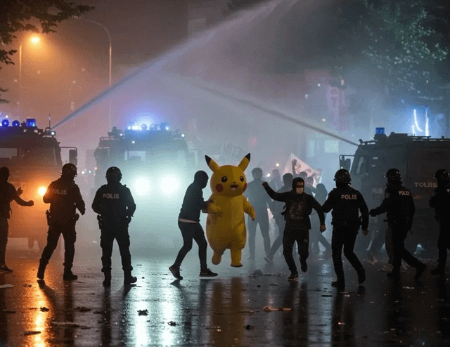 I did it because of a news story I saw on X/Twitter last year. I started drawing immediately; it made me imagine what the riots would look like in Pokémon. Now, I wish I had made Pikachu smaller.