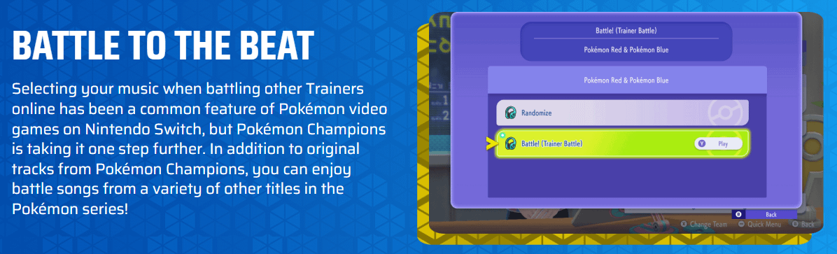 Being able to choose your battle music is a great addition for Champions, especially if they give us most (if not all) battle songs from all the generations!