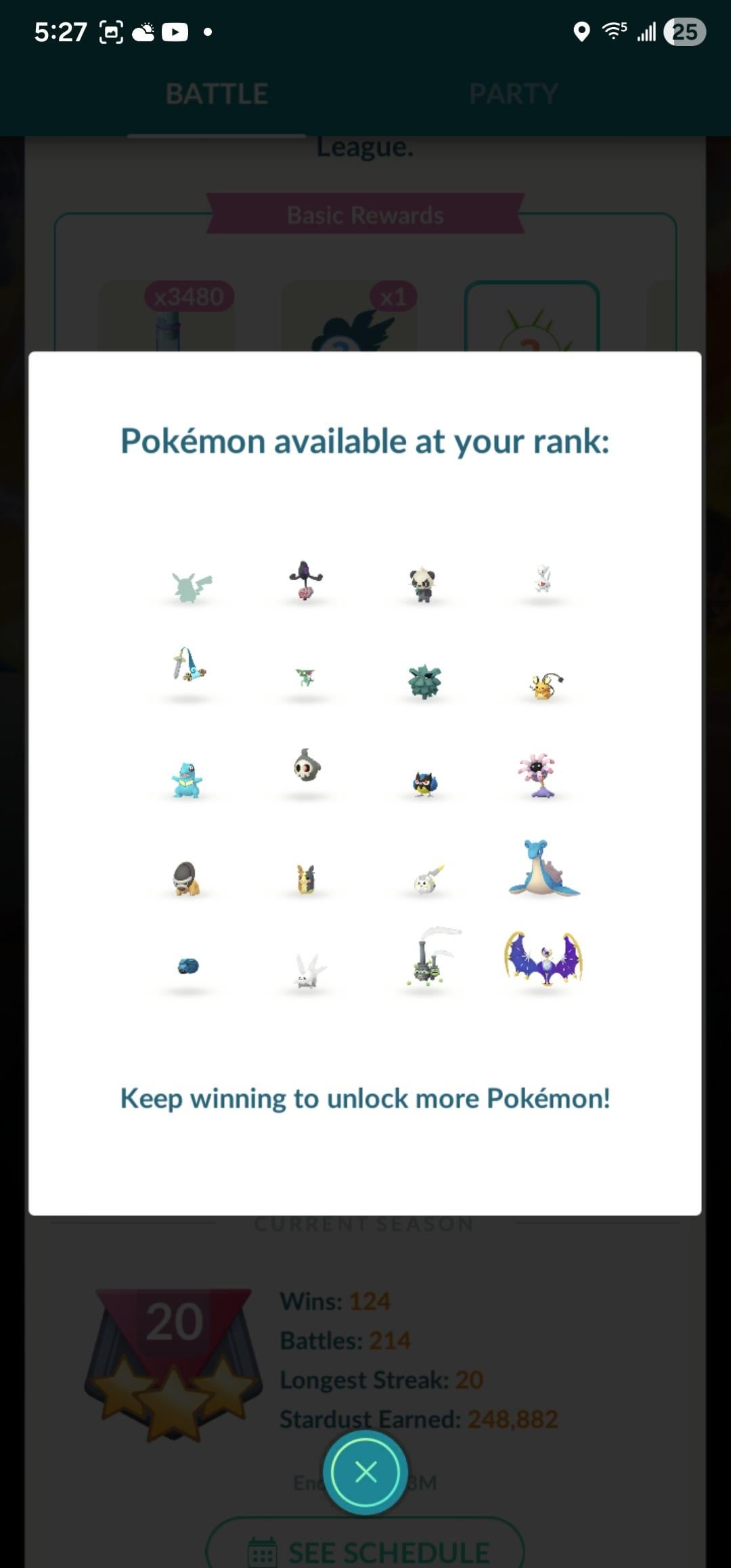 This is what I get for putting it off I guess. And what even more a kick in the shin is that I was a single win off from hitting 20 and still having one try at the Pika. I did not know until yesterday that you don't just get an encounter with the Pika at 20.