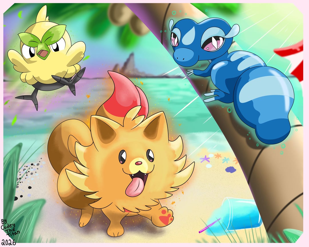 [OC] The Newly Discovered Pokemon Starters Browt 🌱 Pombon 🔥 and Gecqua! 💧