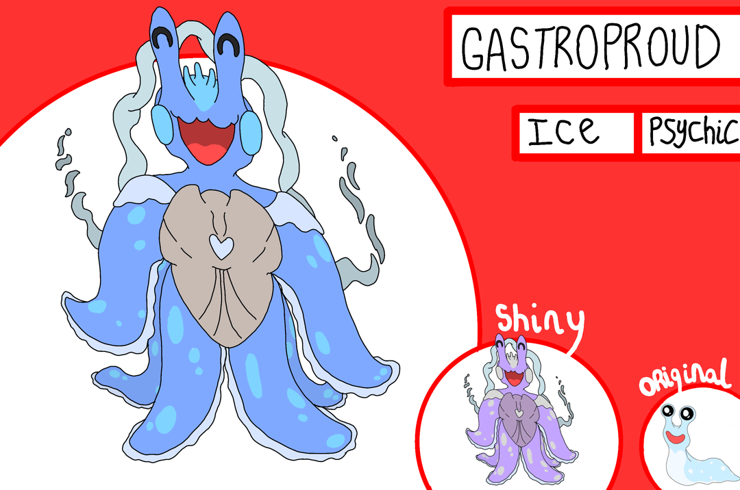 The Pokemon that once had an impossible-to-know evolution style: now, they’re standing proud (or pained) to be their true self. Meet Glasnail, and their split evolutions, Gastroproud and Molluskulk!