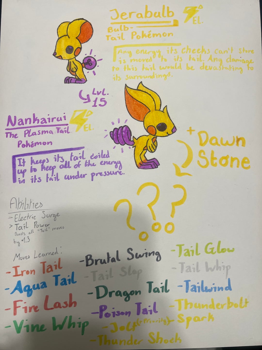 A powerful Pokemon indeed, full of both arcane mana and electrical energy. It can use these to form constructs made out of plasma, and its main weapon of choice is a hammer or mace, swinging its long tail around like the boom on a wrecking crane.