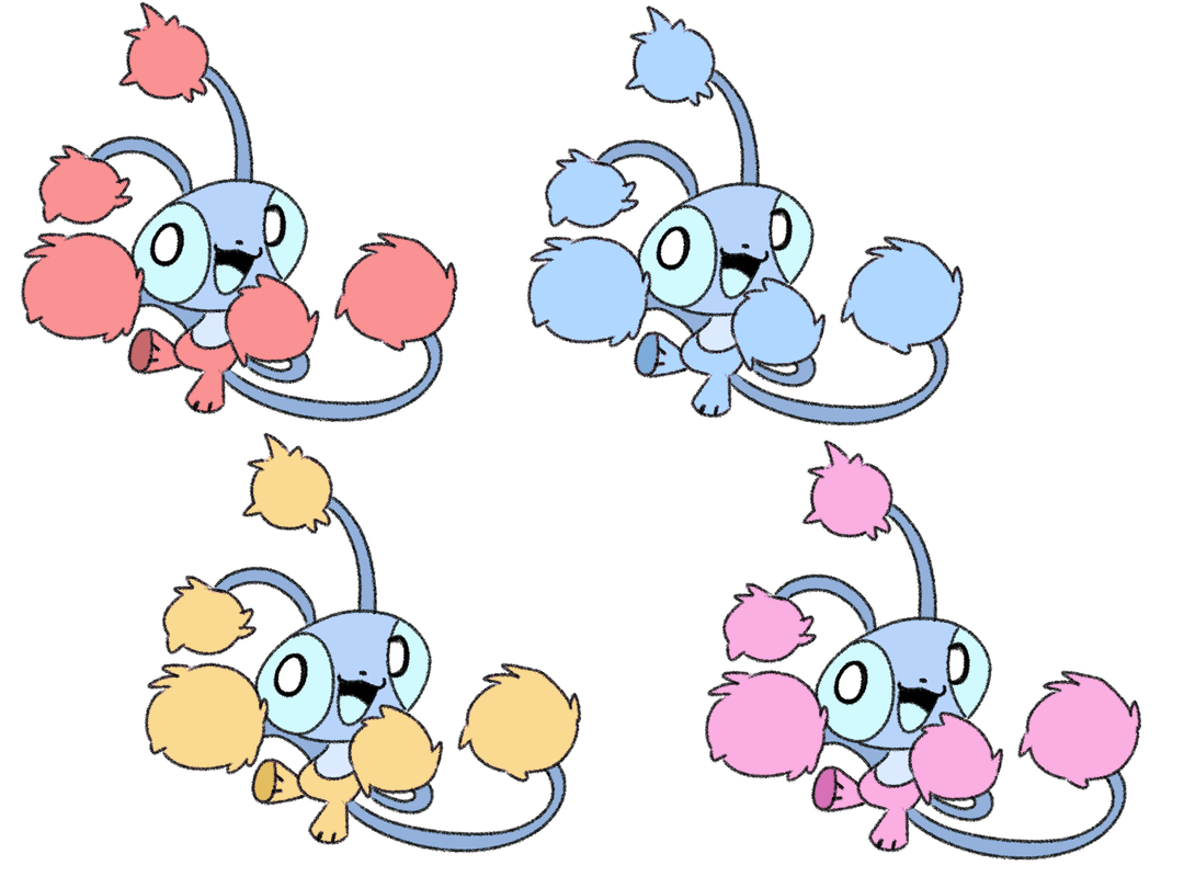 Pompillar carries small clusters of silk tufts in its hands, roughly resembling pom-poms. It likes to dance in groups with other Pompillar, and can come in several colors.