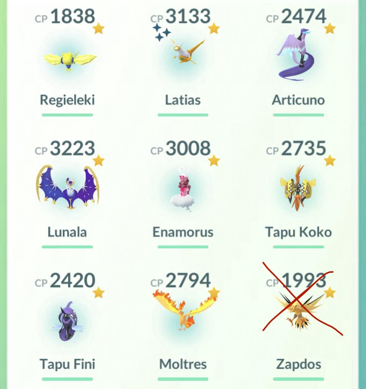 Now is the end of day 2 for me and I managed to catch regieleki in the last hour and a half (my fav regi) I don't get ANY catches yesterday despite running into like 30 encounters but today wasn't horrible. Moltres, latias and Lunala are dupes unfortunately and I really did not want another latias but I managed to catch it in a great ball first try so that's ok plus it was a shiny!