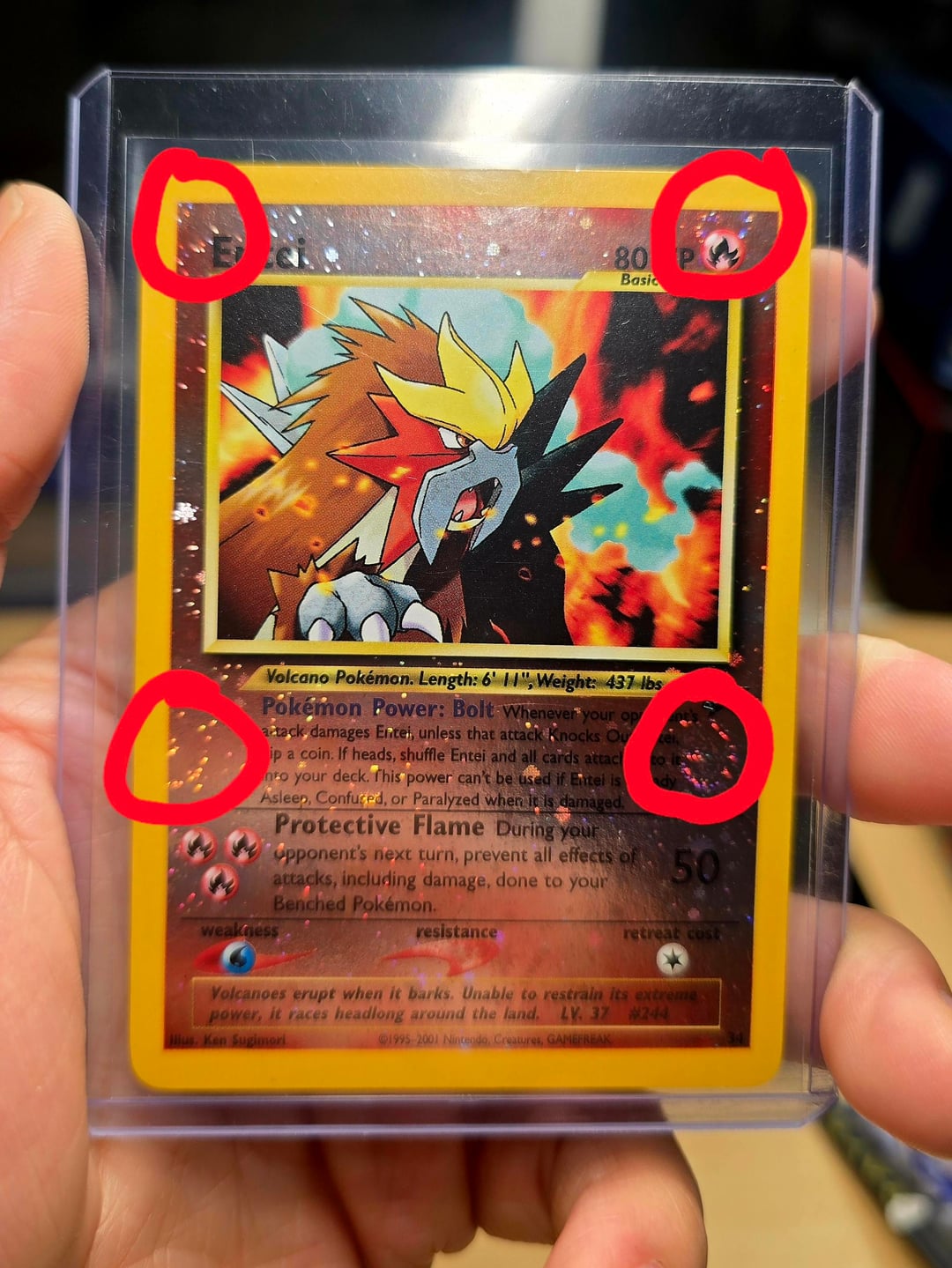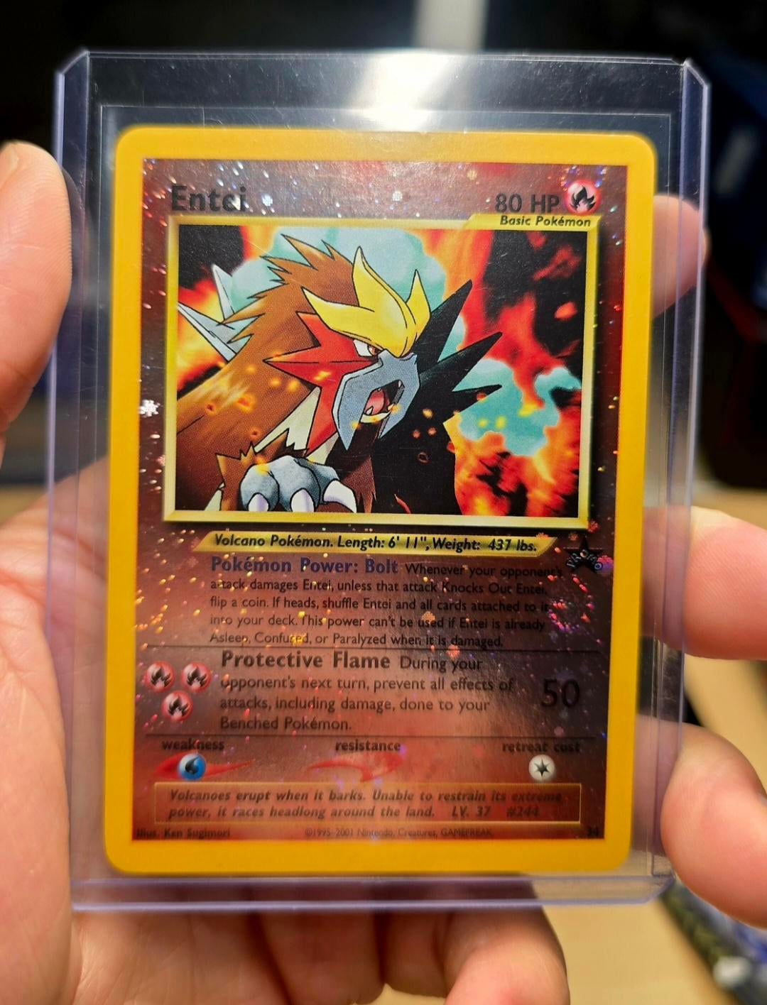 Its hard to get a picture showcases all 4 at the same time but I picked up this Entei Promo as part of a bigger trade and didnt notice till I got home that its got part of 4 different swirls showcased. The foil is beautiful and the swirls are much easier to see in person. I got really excited about this find and wanted to showcase it to my fellow swirl lovers.