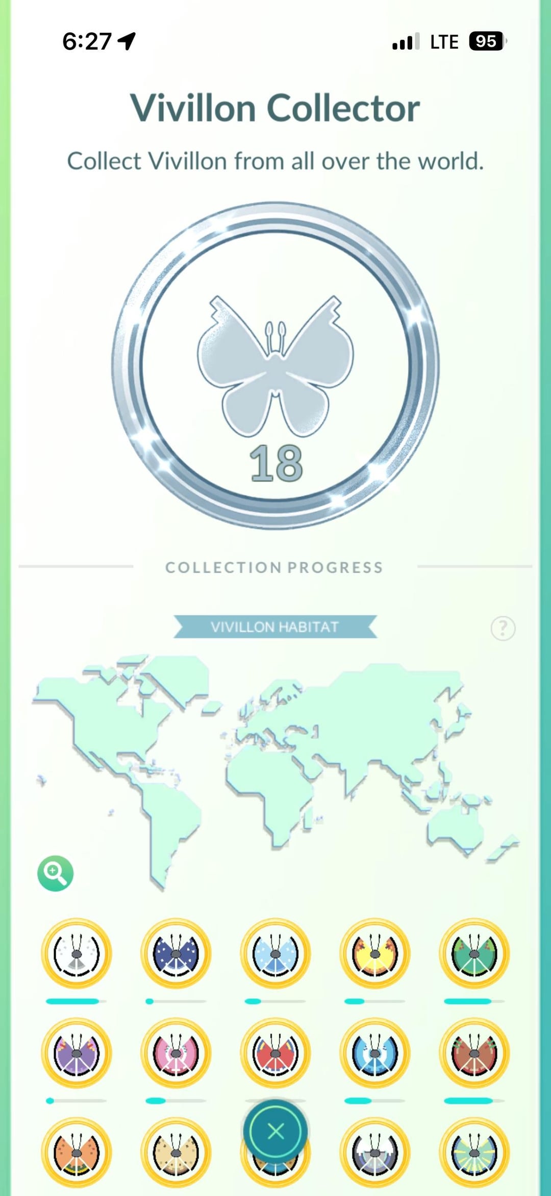 Does anybody else’s vivillon medal look like this? When I completed it, it went platinum but the green bar never went away. The second page indicates I have all 18. Finished then sometime in 2025 I think.