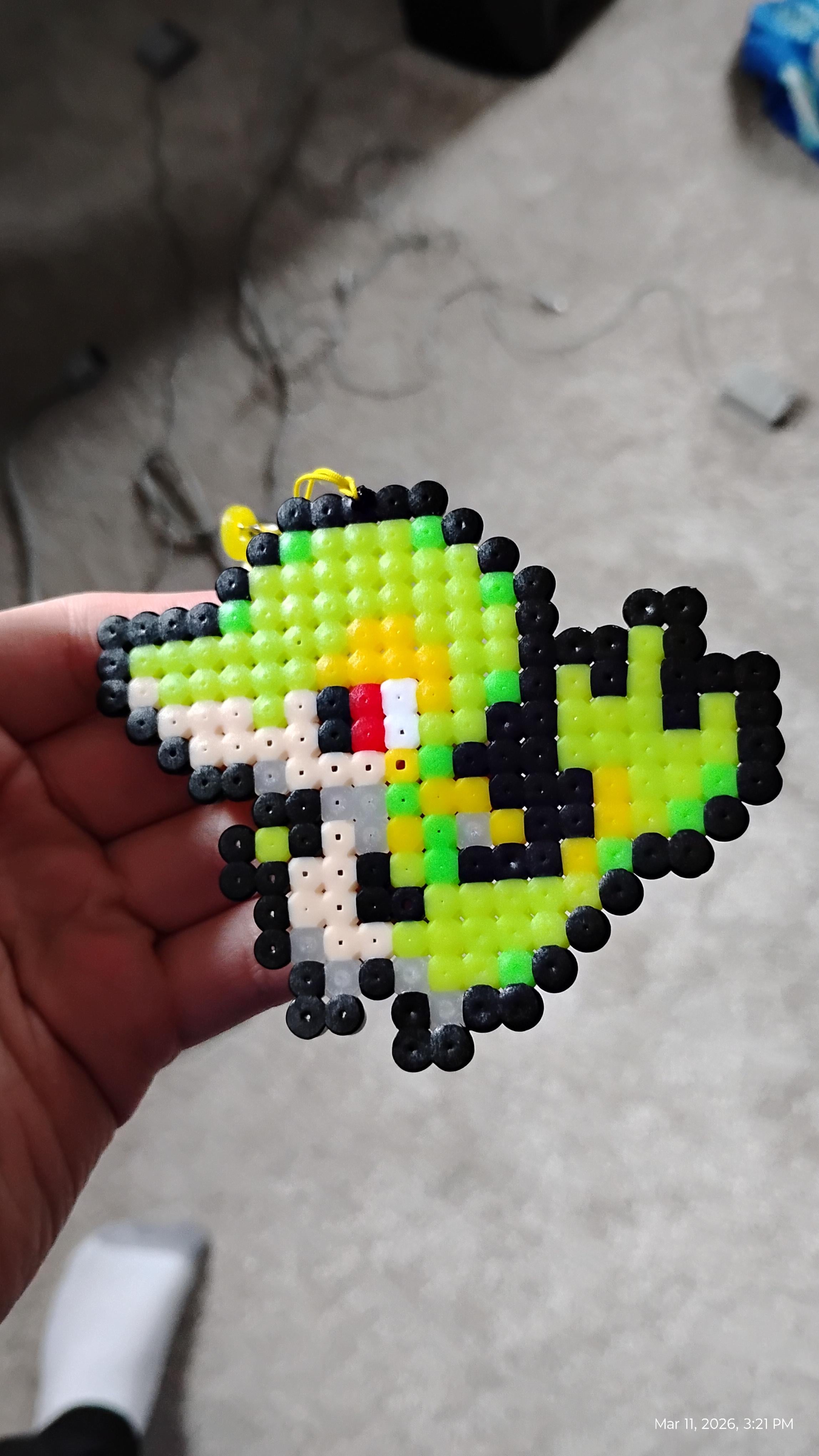 Finally finished up a smol Snivy sprite with melting beads.