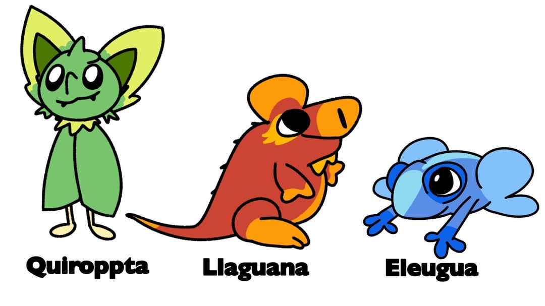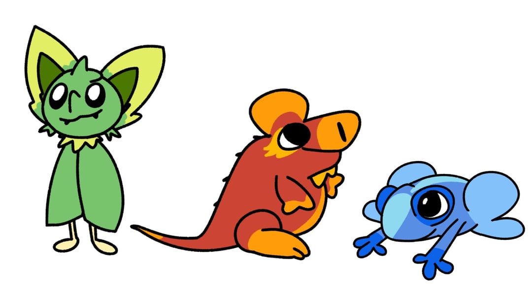 My fakemon starters for my Caribbean region