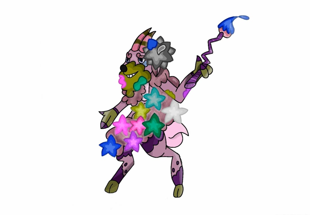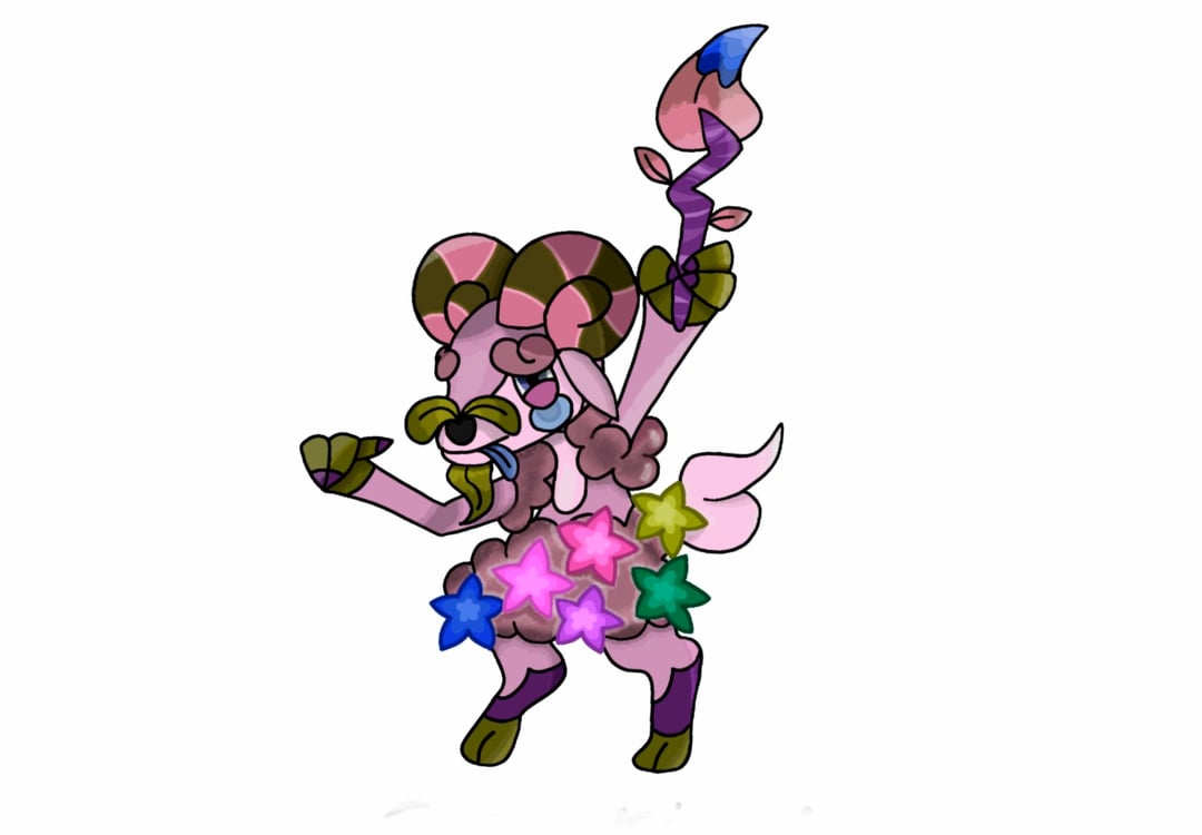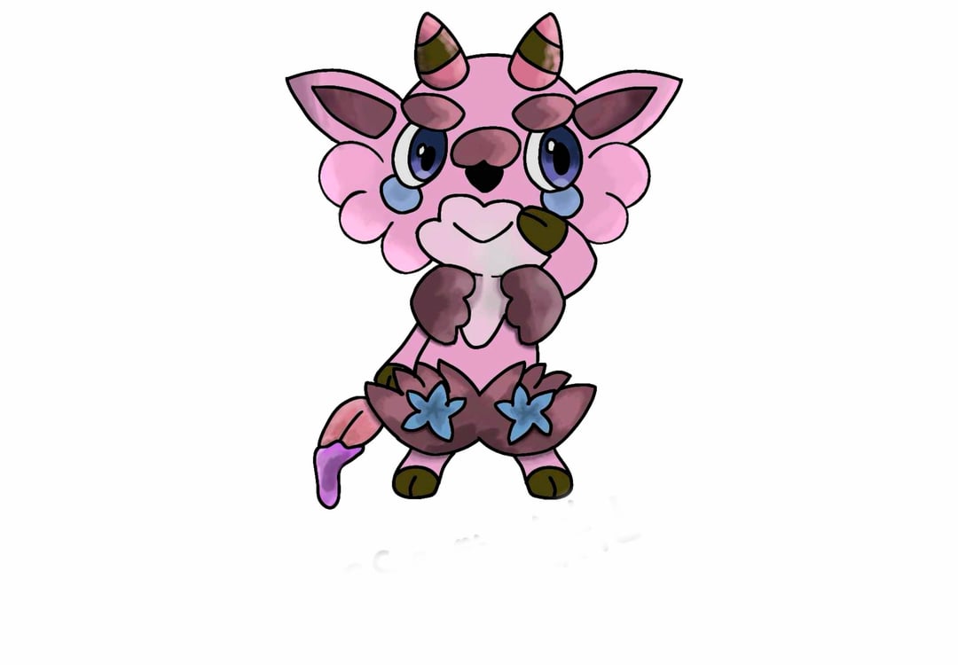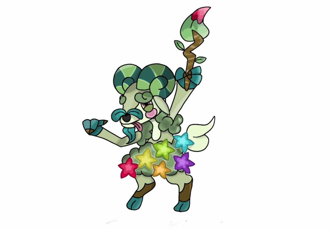 Capraint produces nectar from the flowers on its body, which it uses to paint on trees, rocks, and even other Pokémon. Each Capraint has a distinct painting style—some prefer simple landscapes, while others use swirling patterns. Its colors fade when It's sad and when happy, it produces nectar that becomes noticeably brighter and more aromatic.