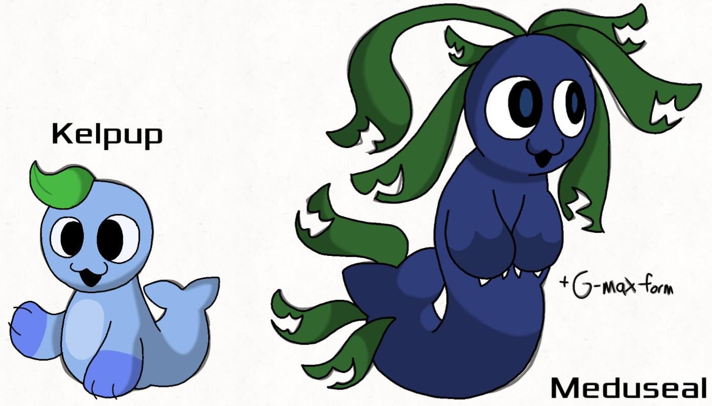 Remade the first and final evolution of my Fakémon water starter. Anything I can do to improve Meduseal, or to make a middle evolution?
