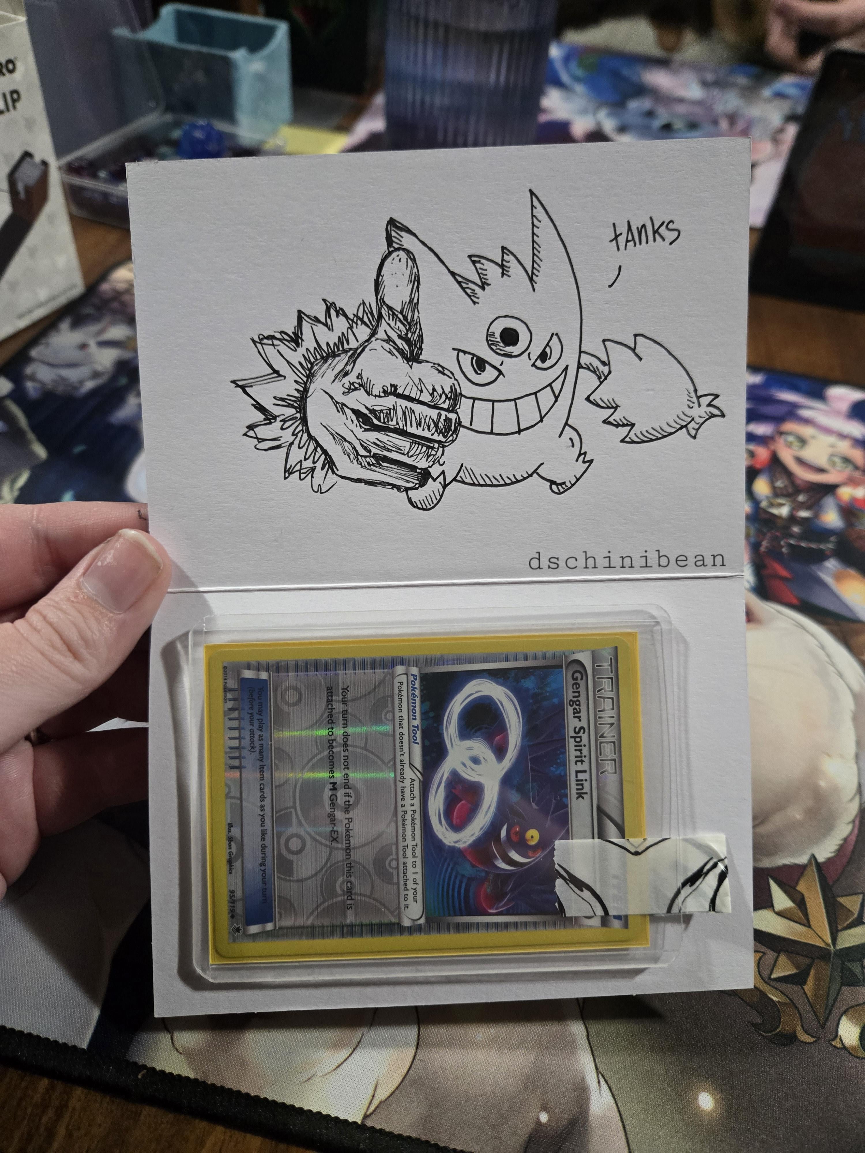 Not sure if it's appropriate to post in this sub, but my husband has been shipping off some cards and I draw a little doodle for each card! I very much like this one haha!