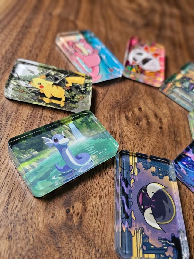 These are TCG Art Blocks. I encapsulate original card art into solid 6mm thick acrylic blocks. Unlike thin magnets, these have a professional, high-end weight and a stunning 3D depth effect.