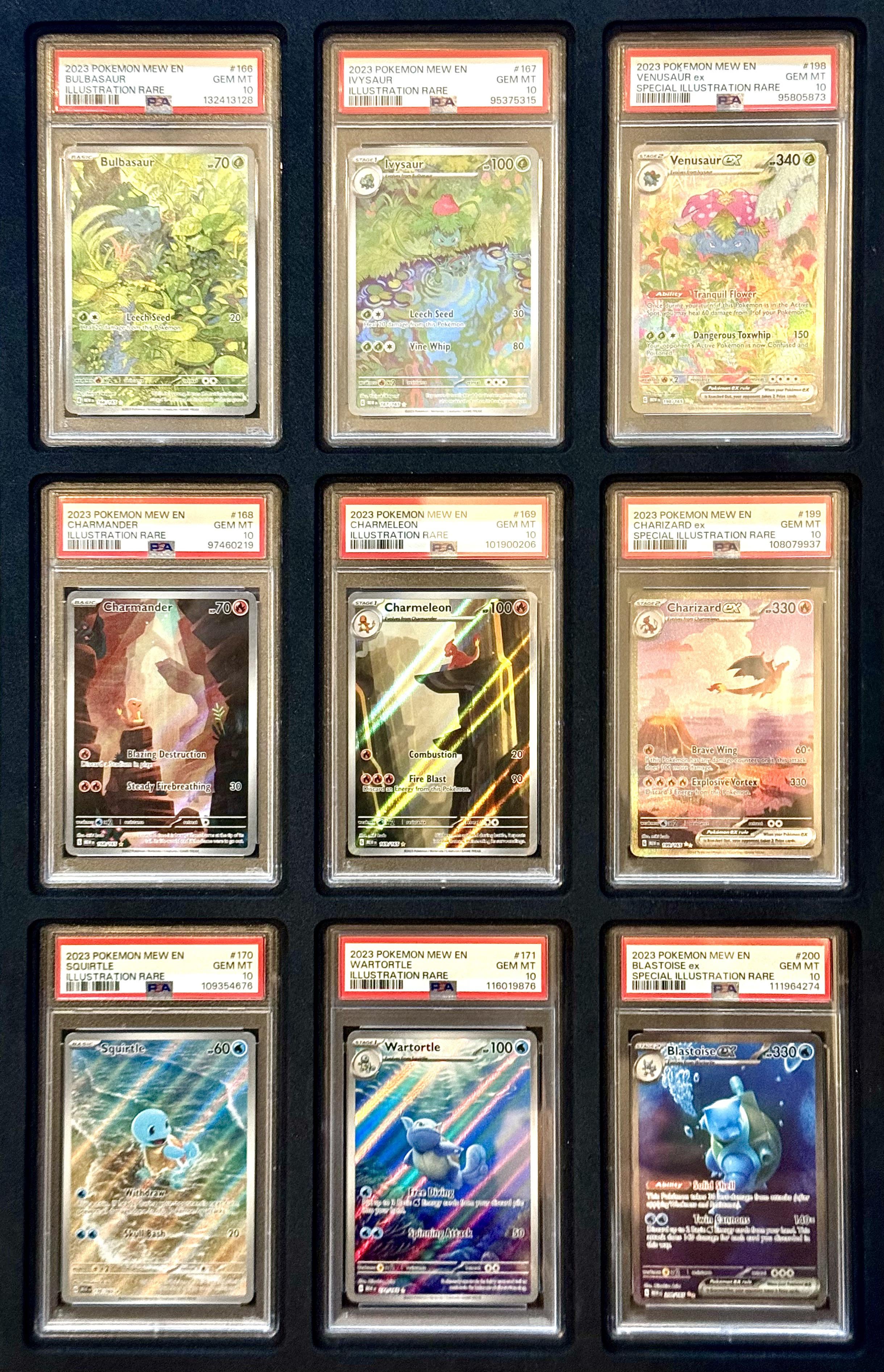 Finished getting the OG starters from 151 in PSA 10s. I only attempted this because I was lucky enough to pull the Charmeleon and Charizard two years ago after ripping a ton of 151. Traded for Charmander last year at Collectacon and then started buying the rest. Most of them were purchased just before the 151 insanity that’s happened in the last couple of months otherwise it would have been prohibitively expensive. The Squirtle line is my personal favorite.
