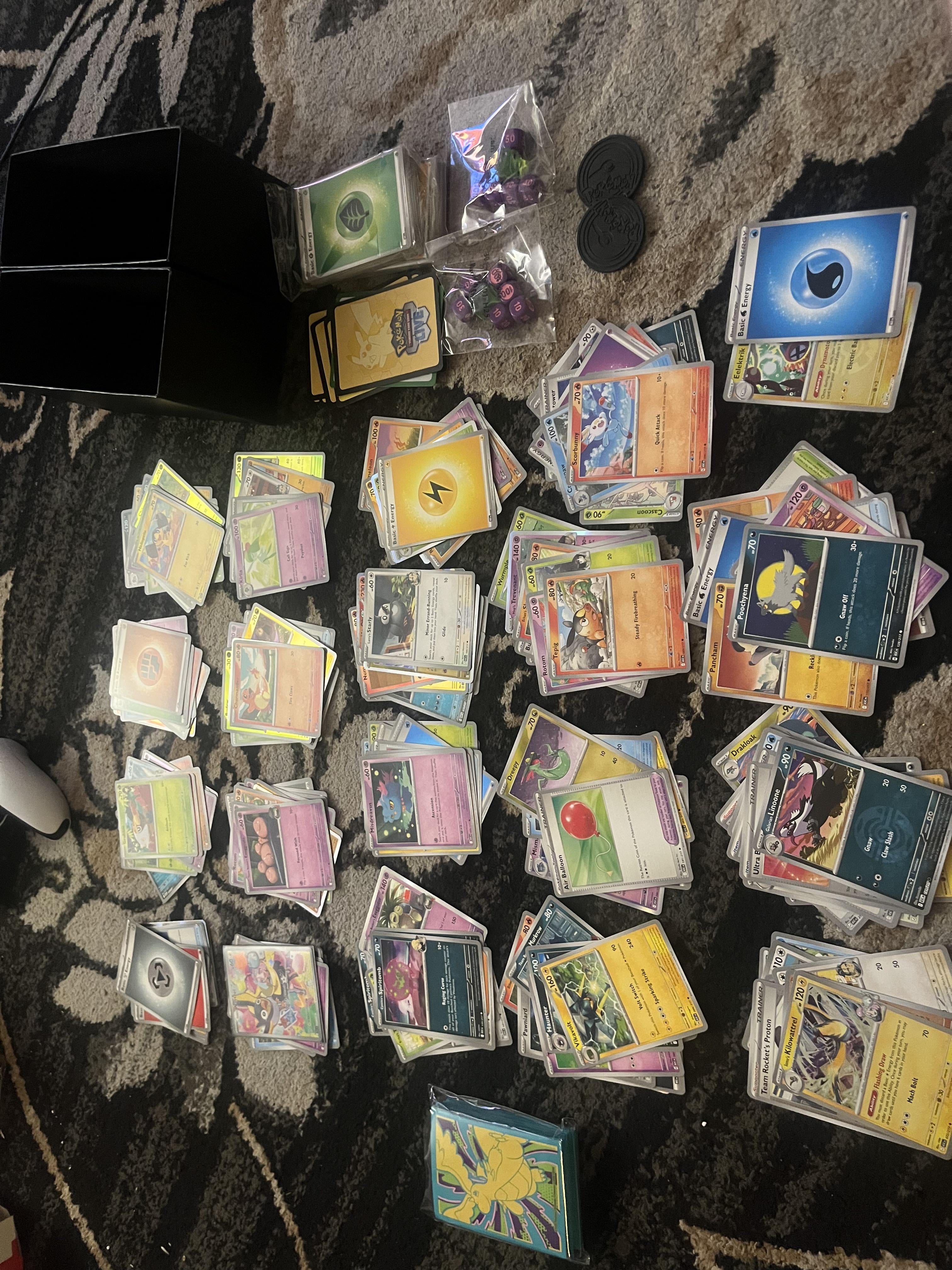 So let me tell you all a funny story. Get to work today and I’m throwing something into our composite bin(I work in a restaurant) and what do I see in it? All these cards. Two etbs worth of cards(minus the promos and one pack of sleeves). They ripped up two cards of regular mega gengar ex and mega meguinum ex and left iono’s card in basically in the trash. These things are 149.99 at the comic shop beside my work. My thought is that they didn’t pull the really pricey cards from the set and just got mad and threw out everything.