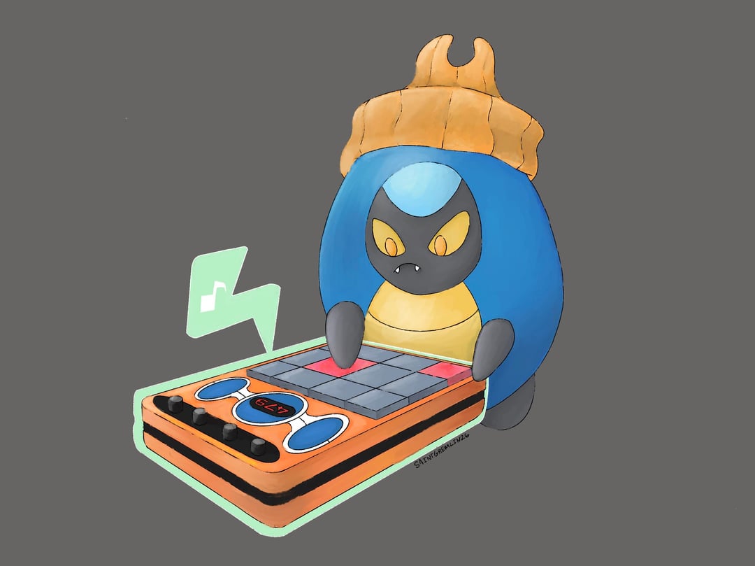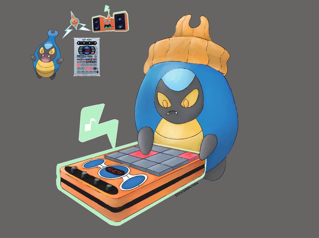 Finally finished this piece. Karrablast making beats on the Rotom 404.