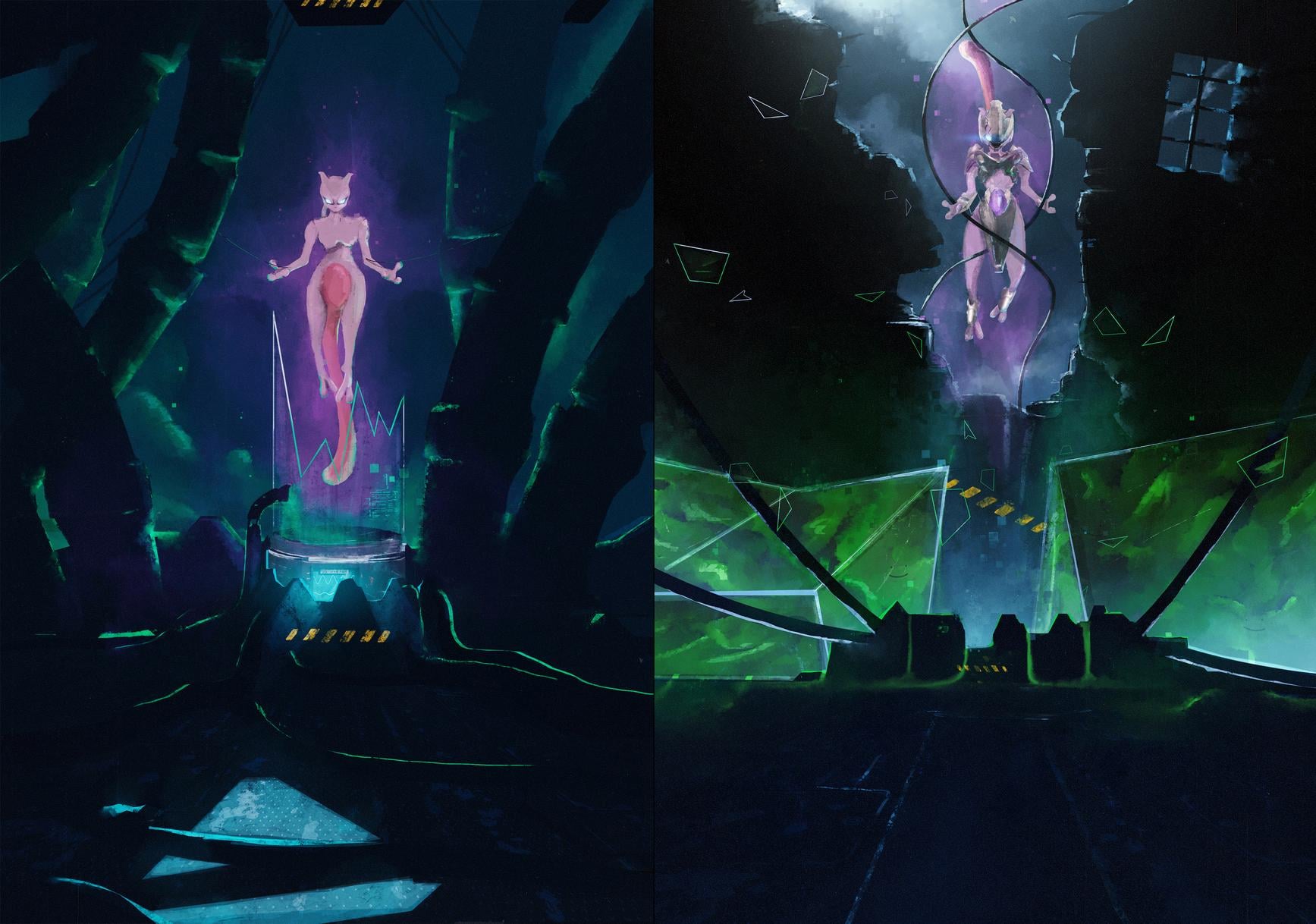 Mewtwo without and with armor…
