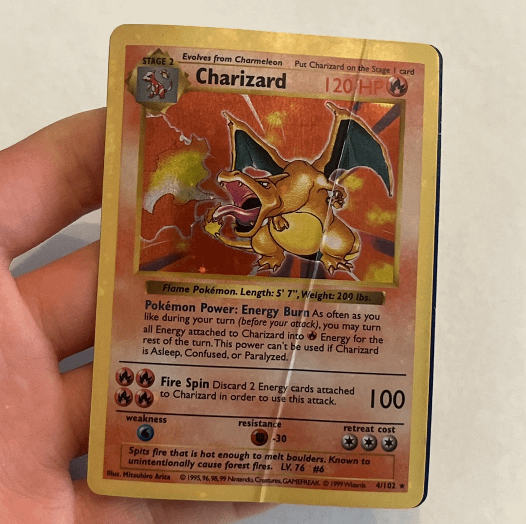 This just sold on eBay with the listing "1999 Pokemon Shadowless Charizard Holo Card 4/102 READ." Two for 1! by SunnySaigon Write A CommentYou must be logged in to post a comment.