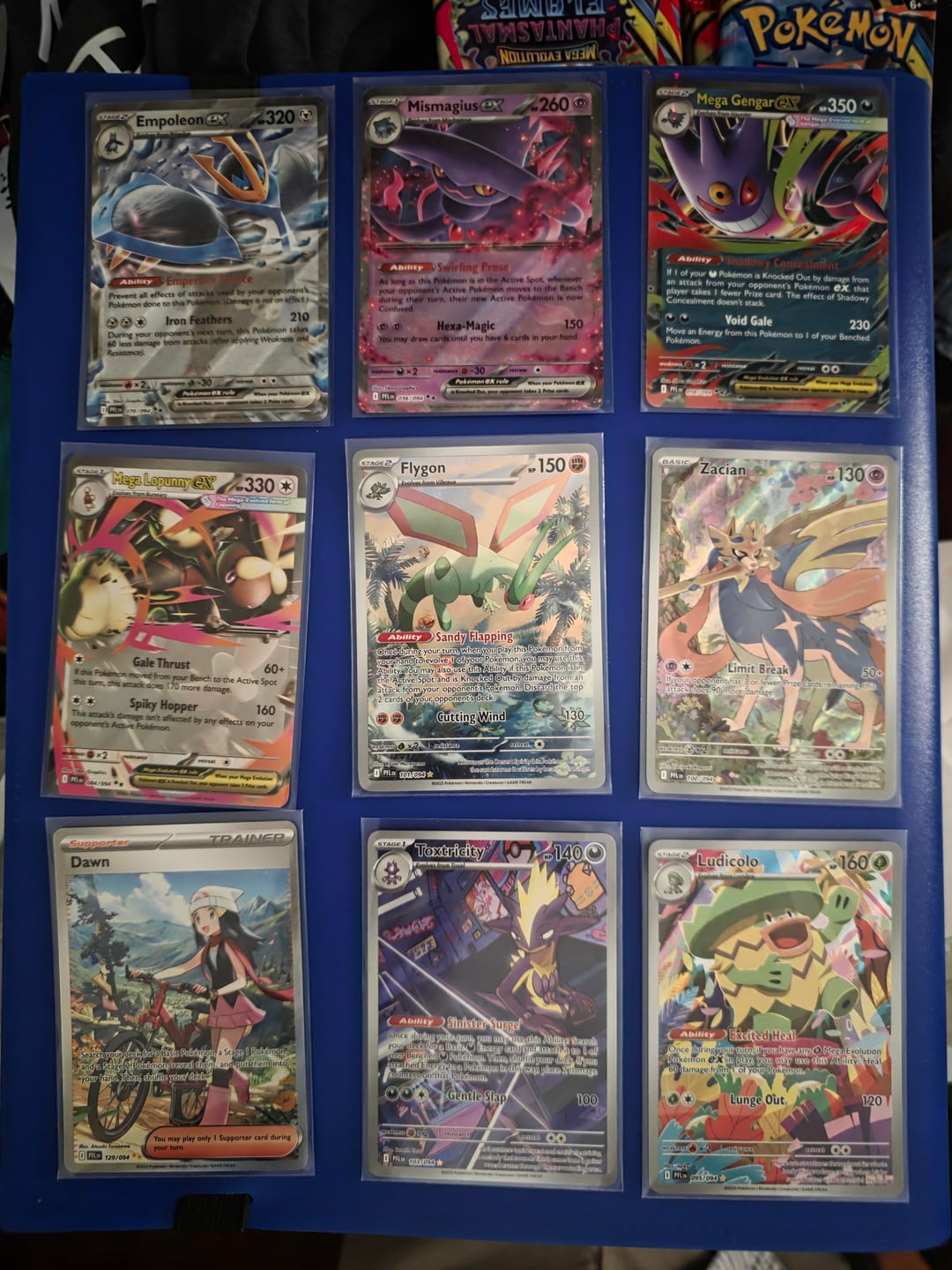 So my son and I ran across some Pokemon Day collection sets at Dollar General so we got 13 of them (before anyone says anything there was a full display with like 30 sets on it so we didnt clear out the store). Anyways after opening up everything we ended up with 25 Phantasmal Flames packs and 14 Mega Evolutions packs. You probably noticed that adds up incorrectly except one of the sets had 2 mega evolutions packs and 1 phantasmal flames pack instead of the usual reversed order.