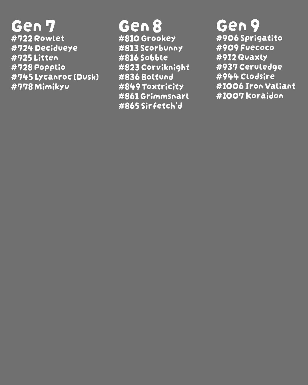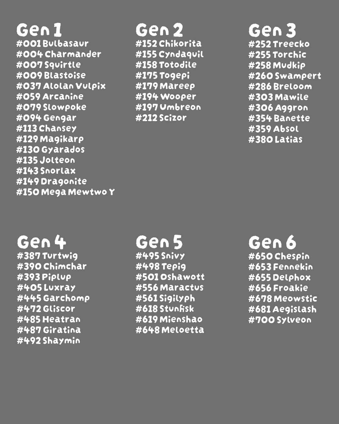 These are the ones of Week 02 and a list of all the pokémon that I already did. Which ones are missing that you would like to see?