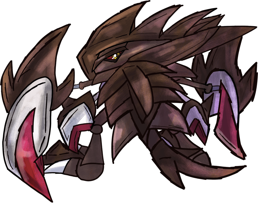So in case of Kabutops, I had to keep the Mega form faithful to regular Kabutops as it’s based on a horseshoe crab after evolving from Kabuto. So what it did for Mega Kabutops design by making the scythes from the original be more bigger and include rocky textures to show it’s a Rock type with a red marker on each one. The tail is extended longer to make it like a prehistoric dinosaur. The eyes were also changed to becoming yellow with sclera being red.