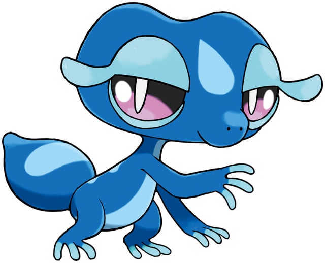 Gecqua : it has a short and bulbous tail, which it uses to launch springy balls of water. It has an intelligent, shrewd, and haughty personality.
