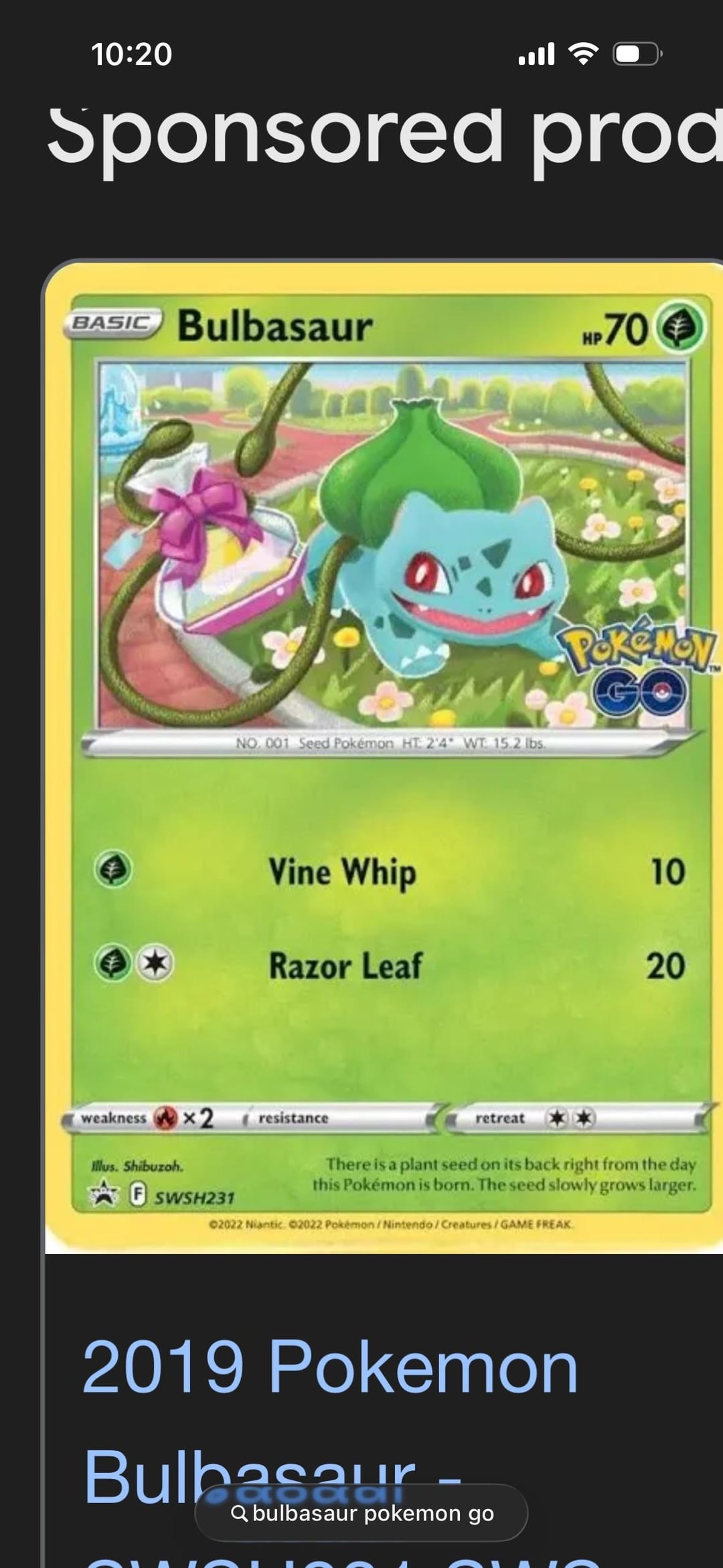 Bulbasaur from poke go