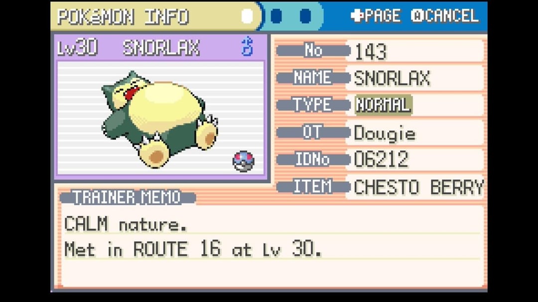 I’m so glad you get two chances to catch Snorlax in the Kanto region after making the one on Route 12 faint I went to the one on Route 16 I made sure I was had 30 Great Balls before I attempted to catch him and I didn’t even weaken it I just kept using Great Balls until I caught went through eight before I finally caught him with the ninth one