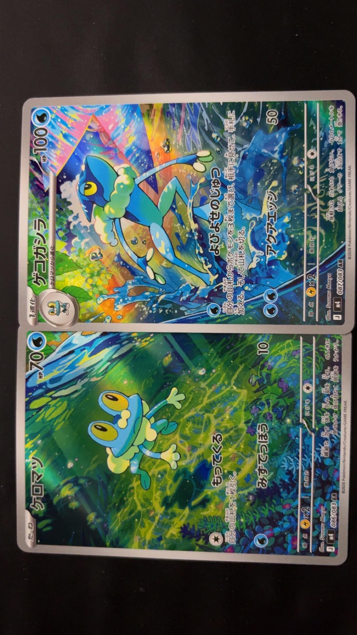 Not even thousand dollar cards like the rest of collectors are out for but seriously we’ve been due full arts for the greninja line for literally a decade, so happy honestly, maybe i’m bias but that frogadier in person is genuinely at the level of articuno from journey together, one of the best looking cards