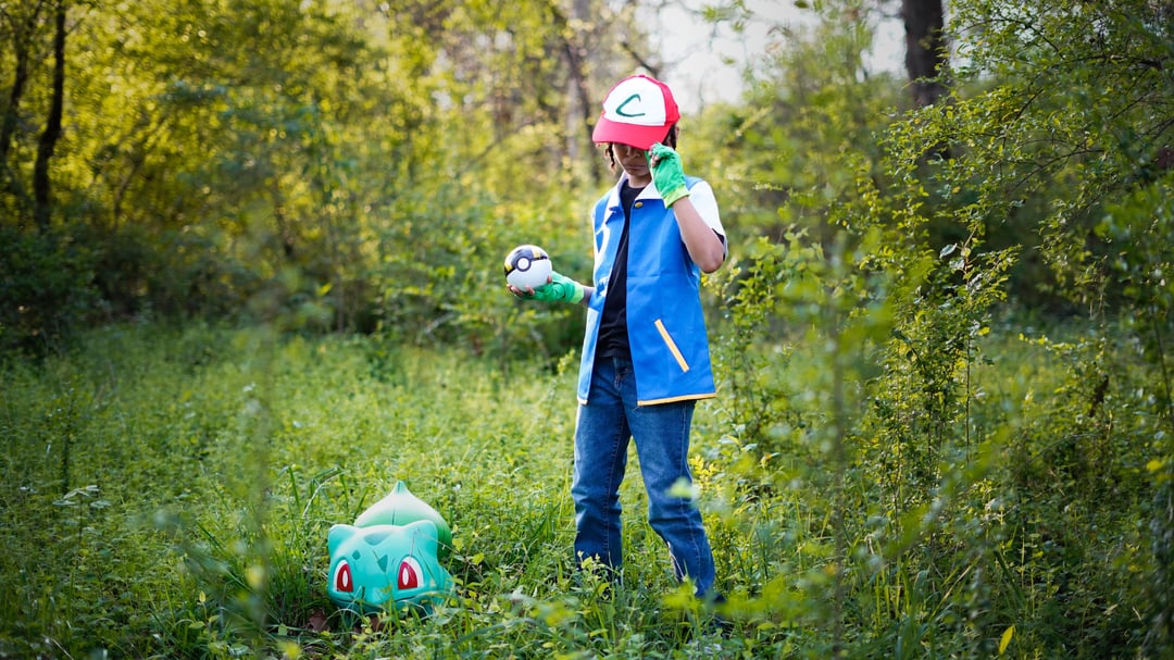 Did a photoshoot with my son for his birthday! Made the Bulbasaur myself.
