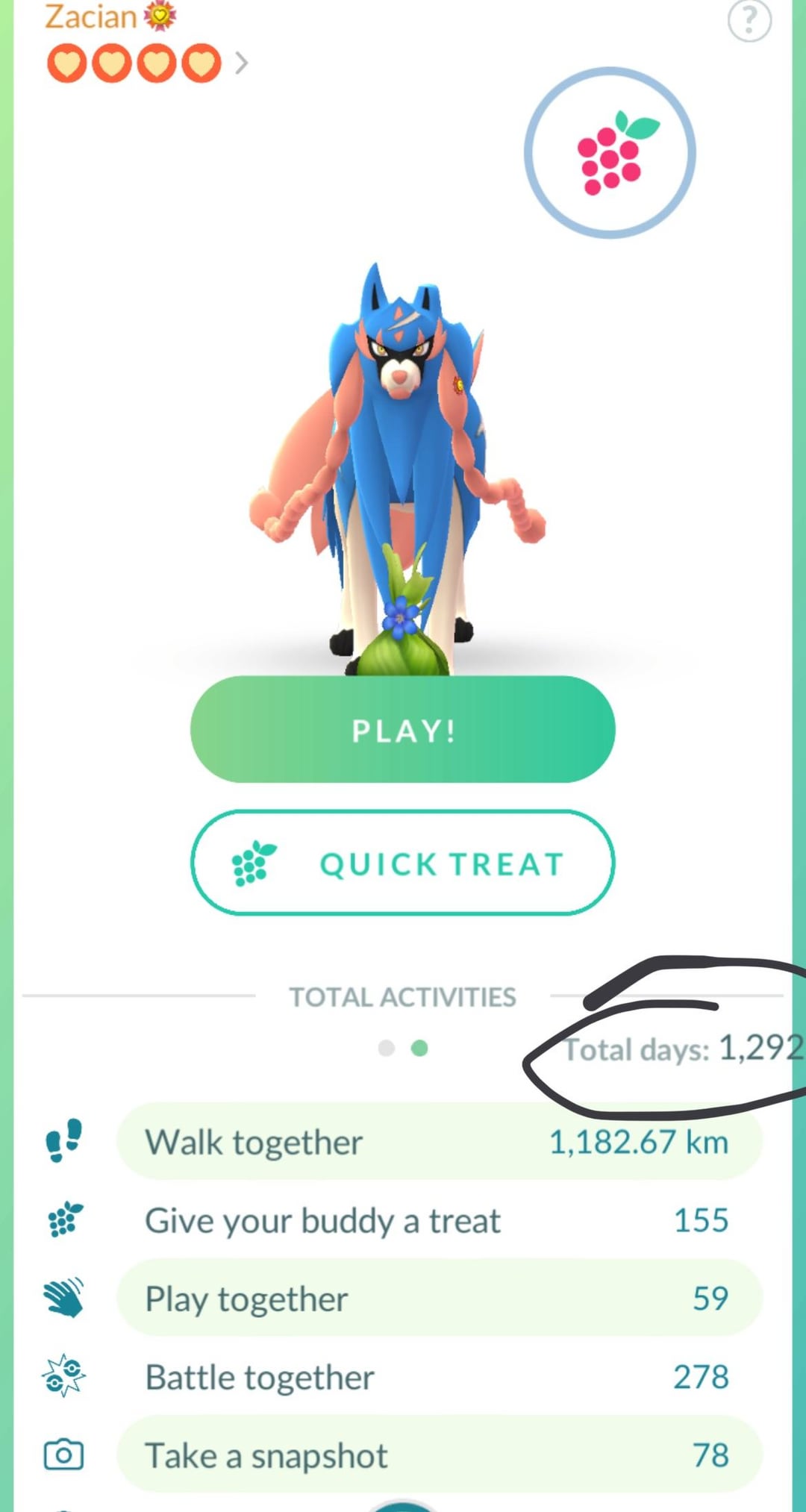 Finally after a loving 1292 days, I’m best buddies with my Zacian
