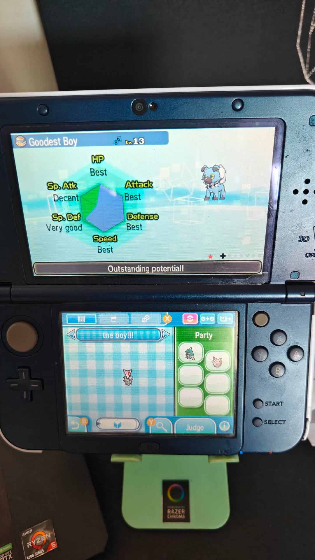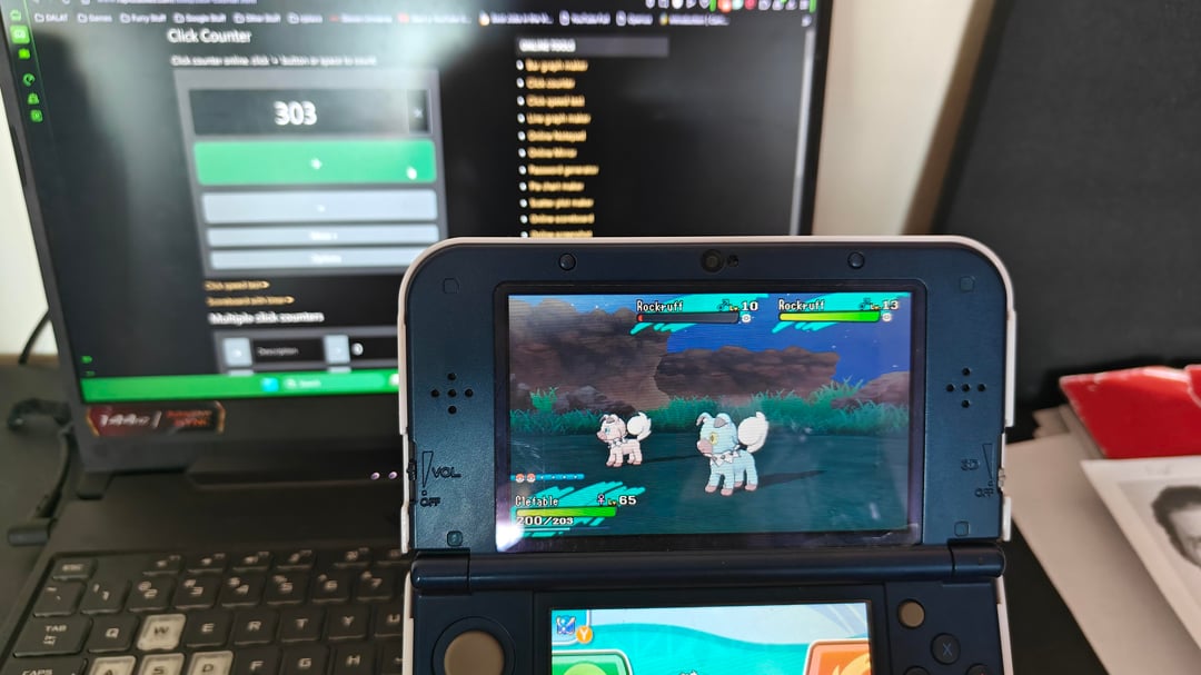 Here's the TL;DR – I 100%ed the dex of my first pokemon game 10 years after beating it and decided to go shiny hunting for a rockruff. I got one and tried to celebrate by taking a screenshot with a mod menu, which worked fine before but suddenly crashed the game. I trucked on the next day and finally got the second shiny which took almost twice as many rockruffs, and now I'm excited to bring him over to Ultra Sun whenever I play it.