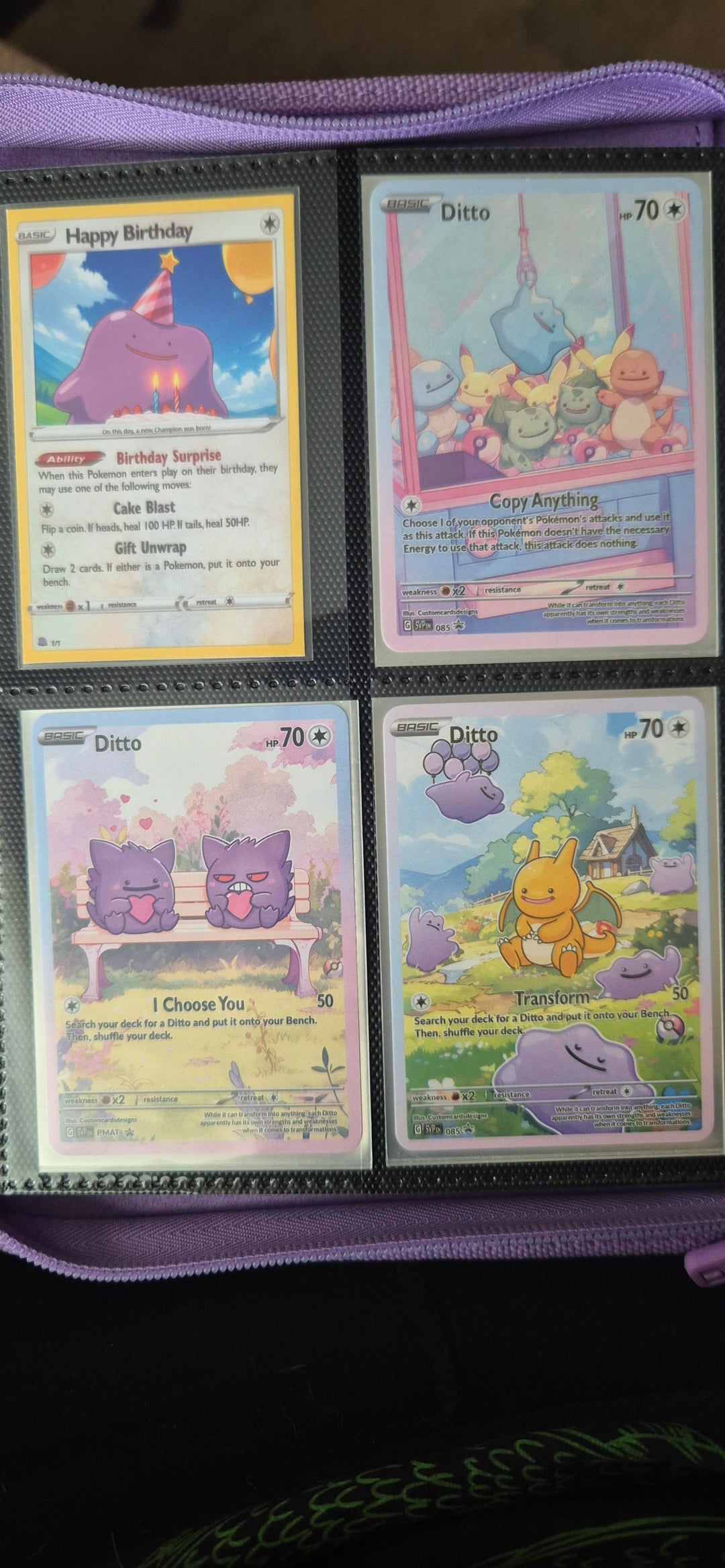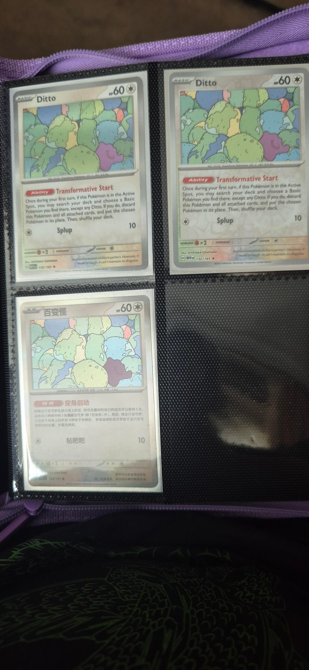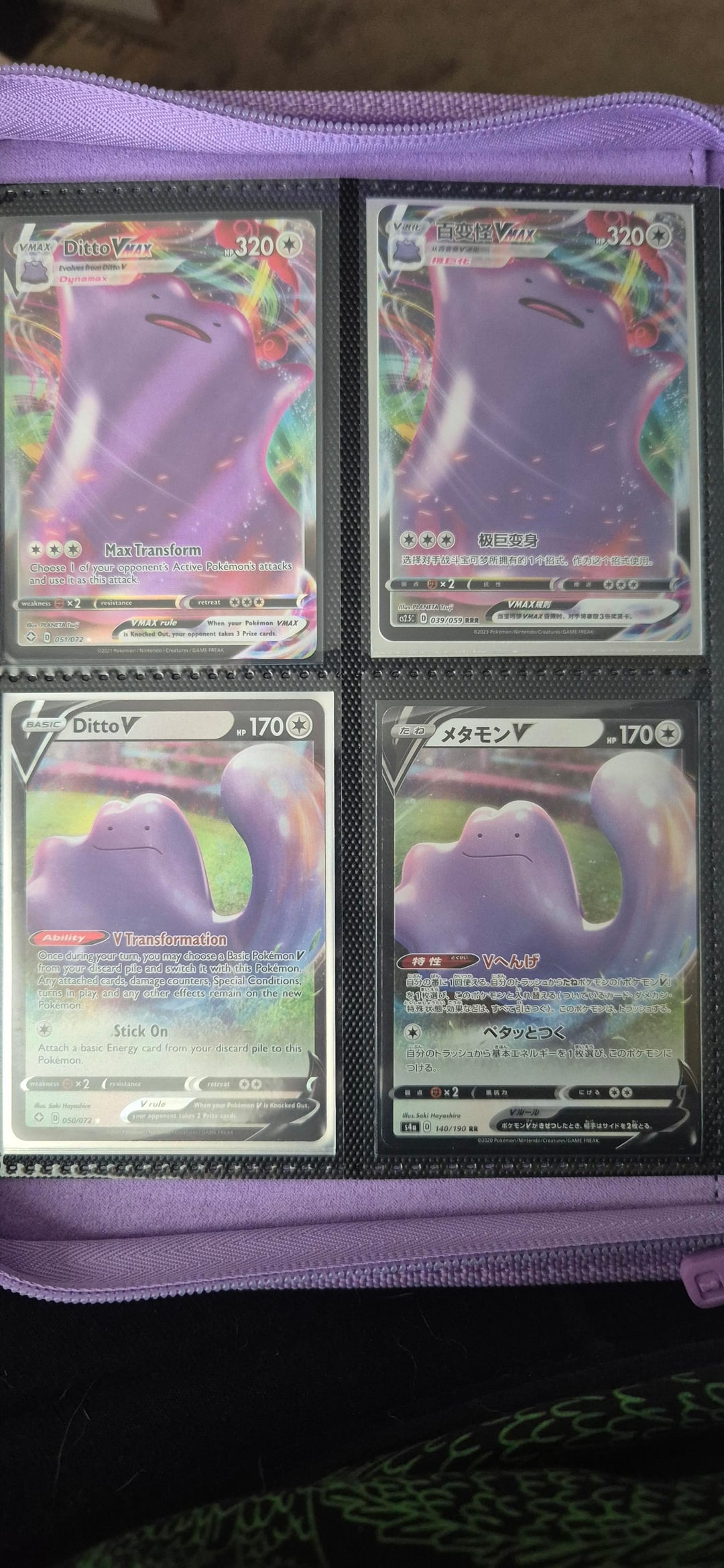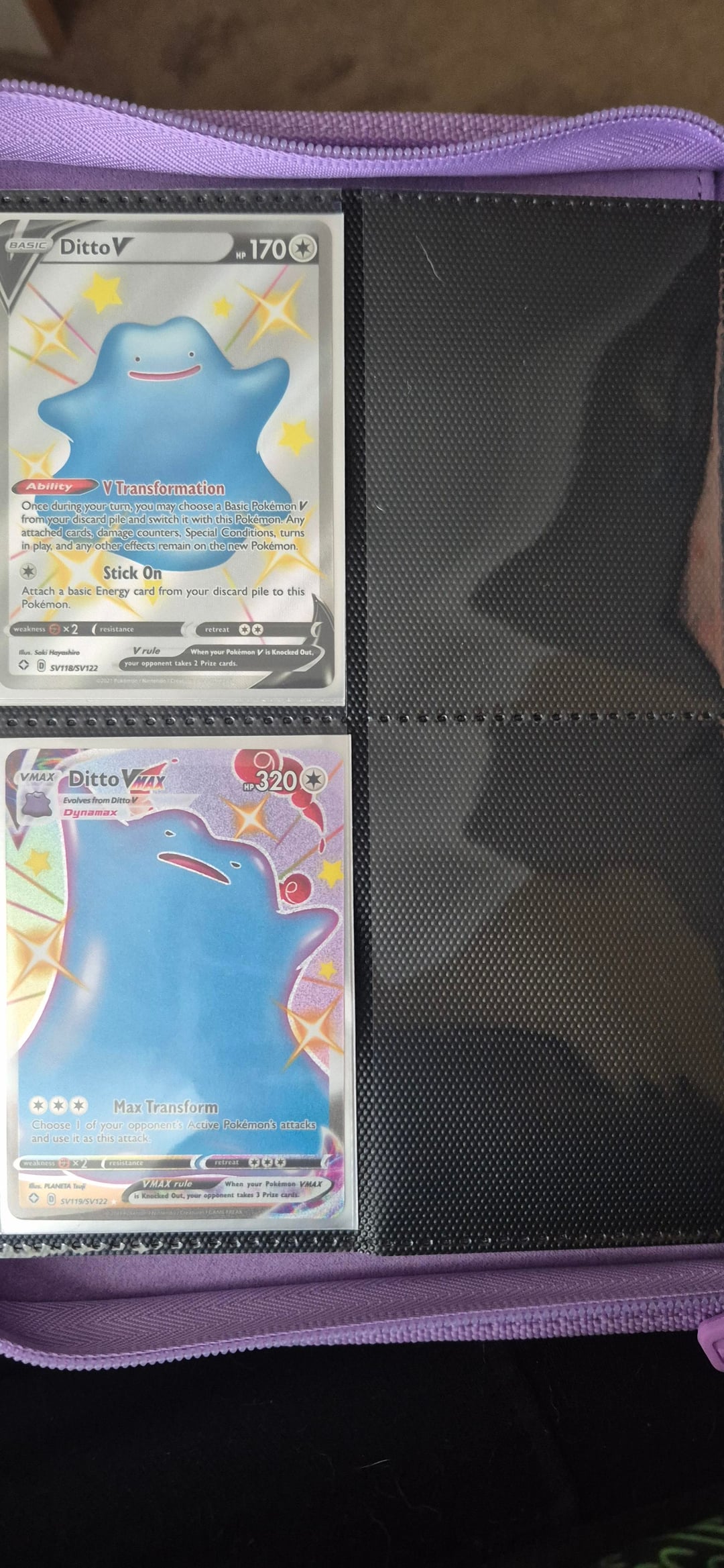 Hello everyone! I made a post last time showing off my fiancée's Ditto binder and she didn't have much Ditto cards in that post, but after a while now she has quite a lot now! We attended our first card show in Cardiff yesterday and she picked up loads of Dittos! The 151 dittos she bought 1 pack of 151 and she pulled both dittos back to back and that's all she wanted! The metamong Lapras promo she pulled the team rocket mewtwo from her first ascended heroes ETB and sold it at the card show to get that promo Ditto!