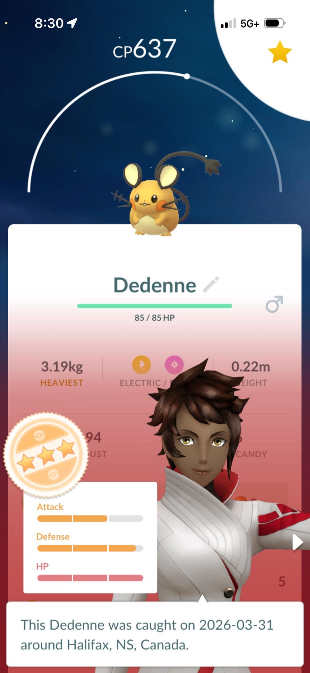 I have two Dedenne. One of them has CP of 637, is a three star Pokémon, full HP, close to full defence and 2/3 full attack. The second one I have has 1269 CP, no stars, very low attack and defence and 2/3 HP.