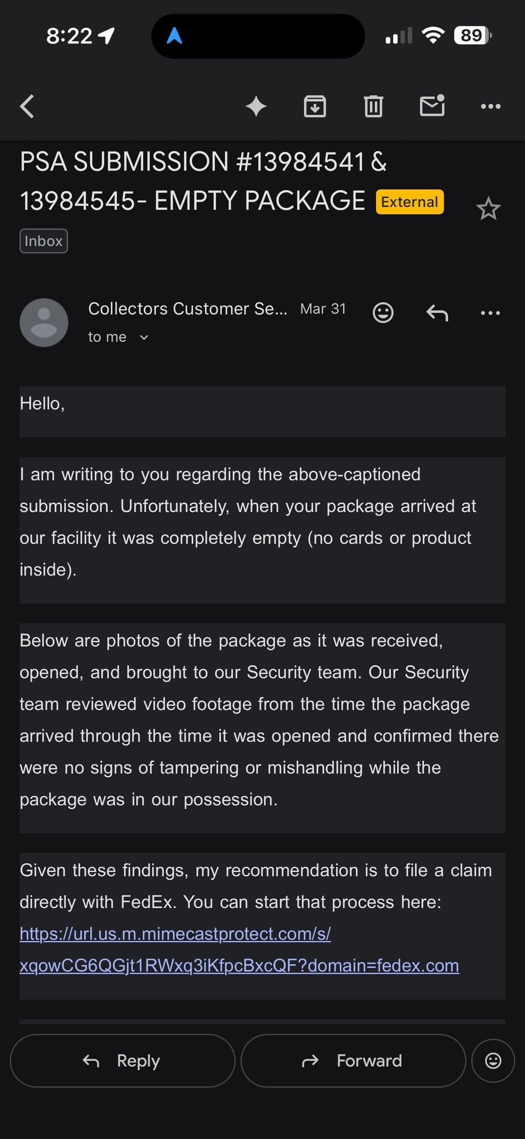 I tried reaching out, but there’s no phone number, no real support — just an email response telling me to file a claim with FedEx.