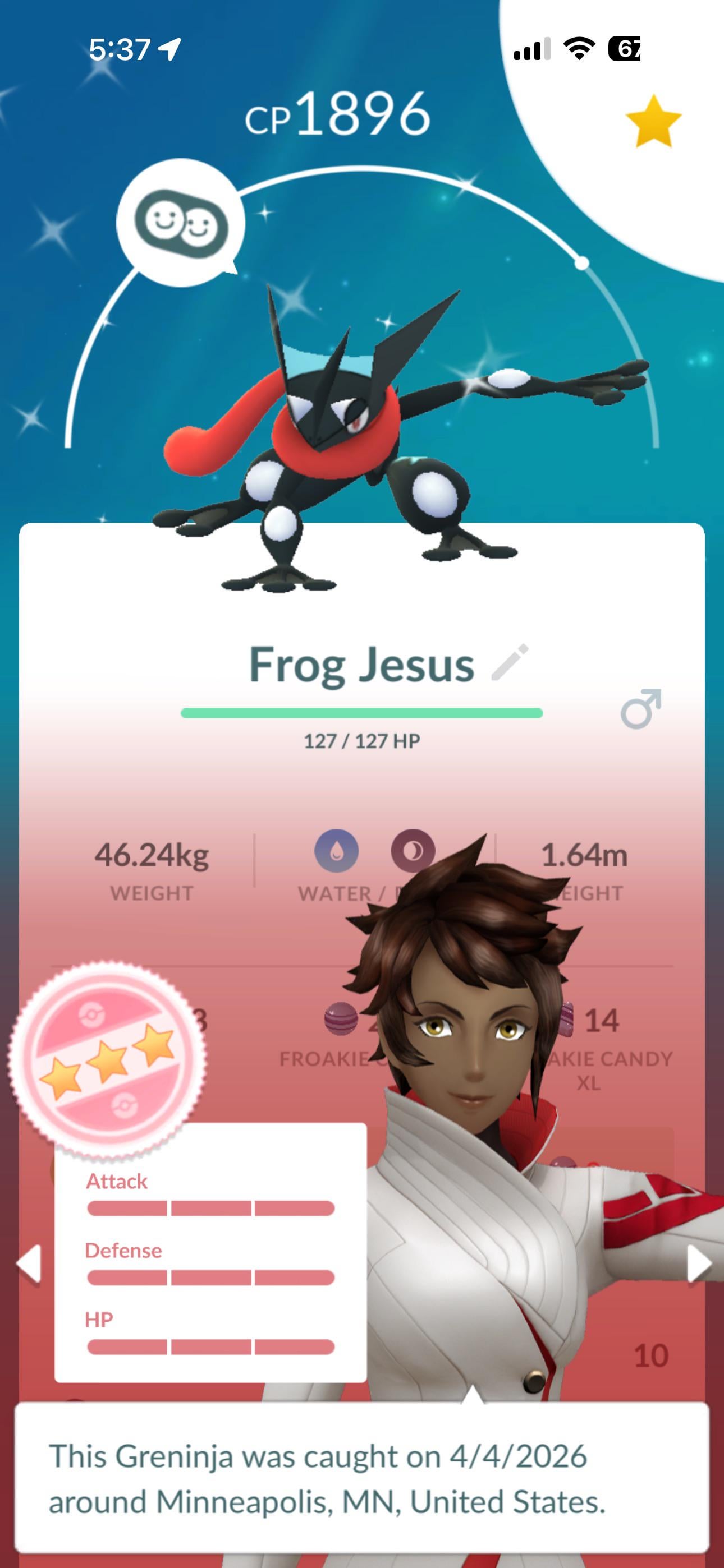 First perfect shiny, playing off and on since pogo launched. I knew the frog gods had my back. Thanks to all the greninja fans out there for manifesting this luck and sending it my way by LimeJuice- Write A CommentYou must be logged in to post a comment.