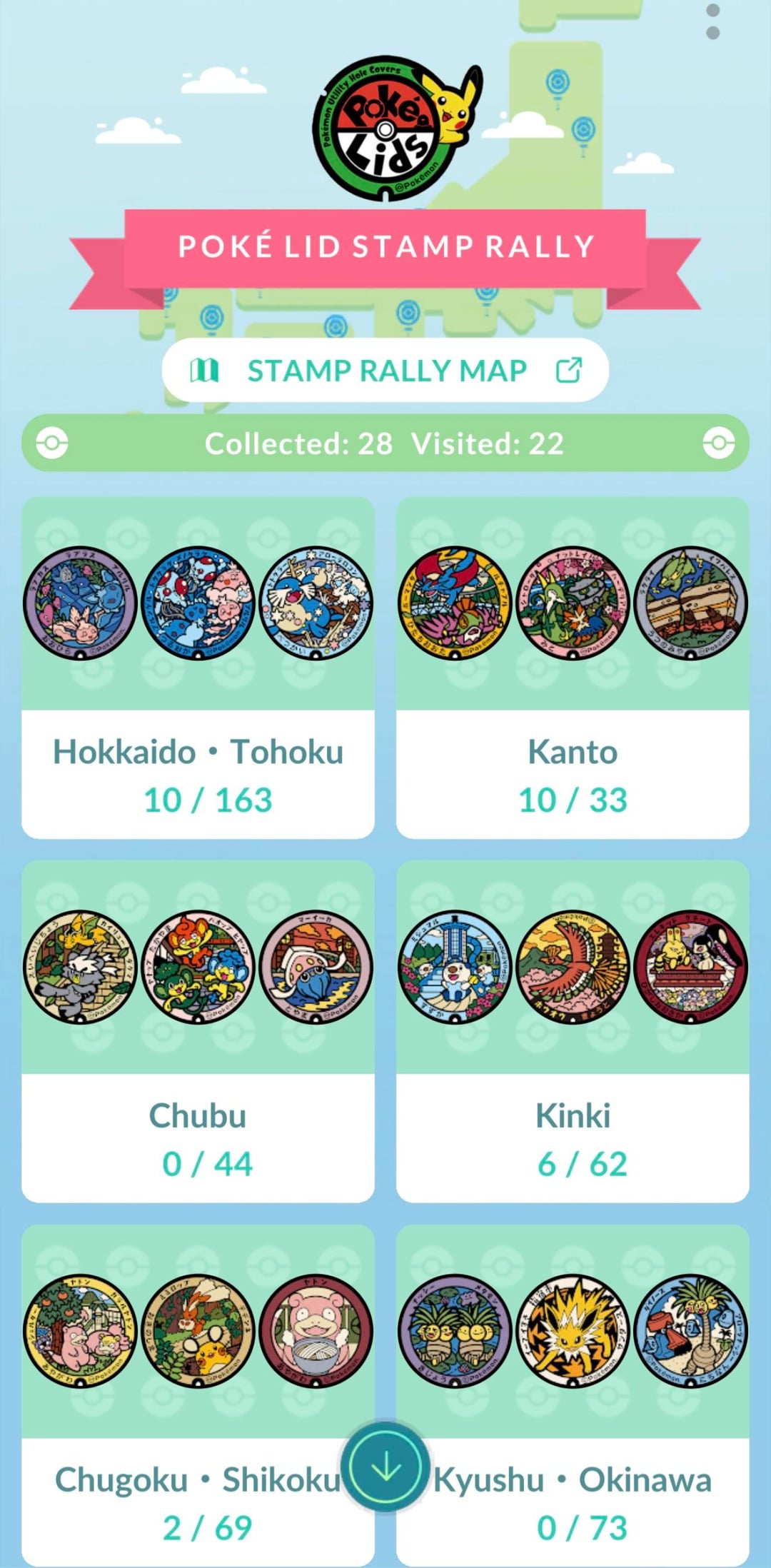 Stamps visited – 22 and got quite a few different background location cards from that as well!