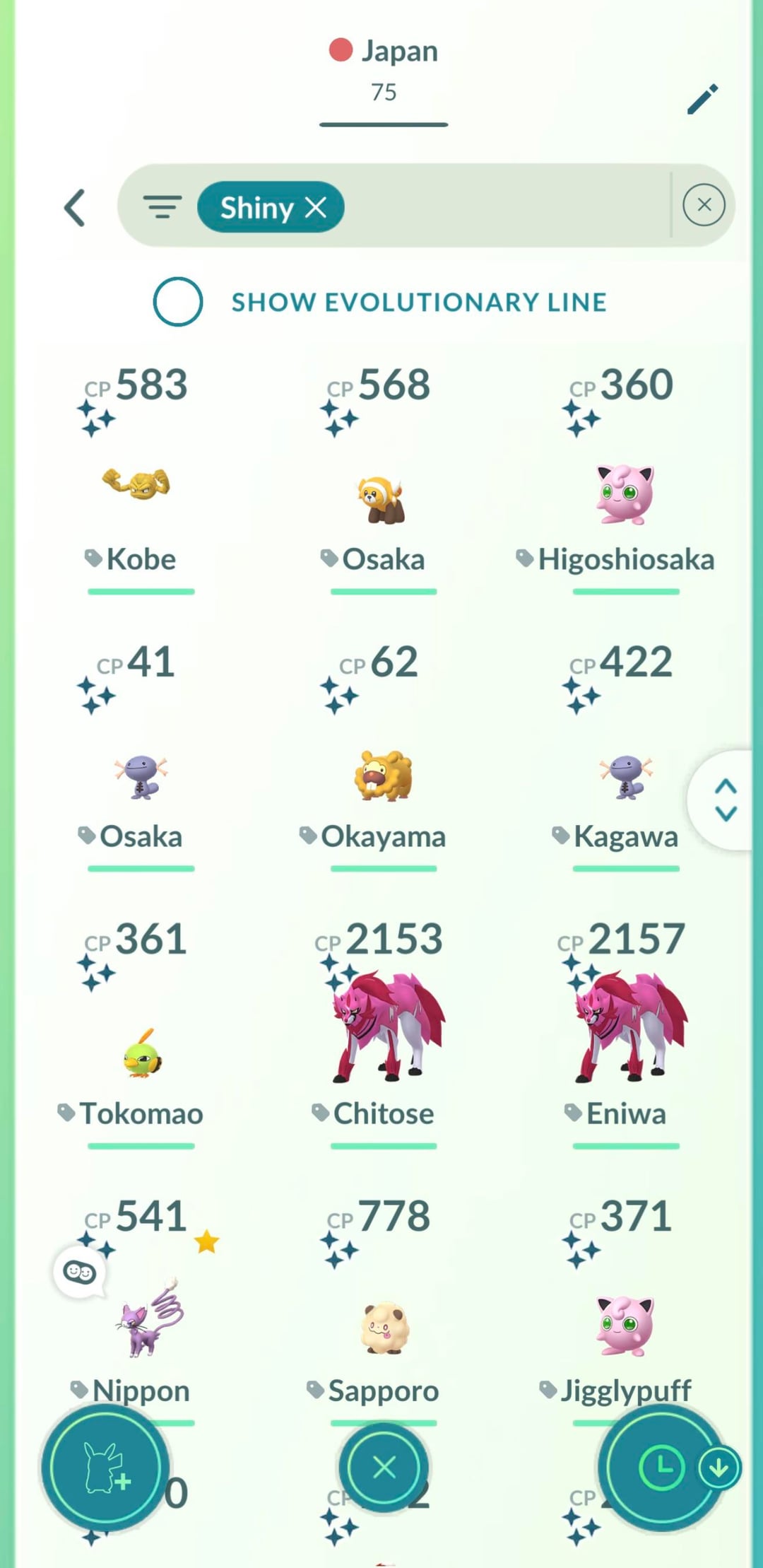 Shinies caught – 41 shinies Avg per day – 2.73