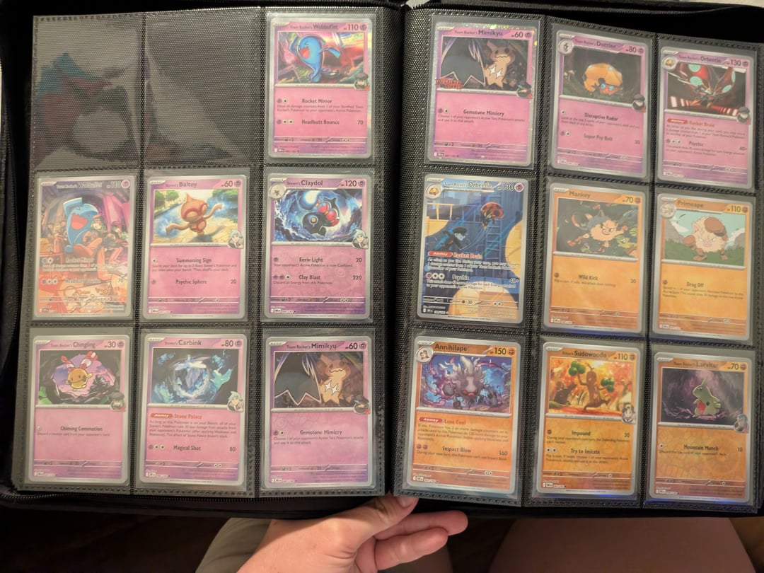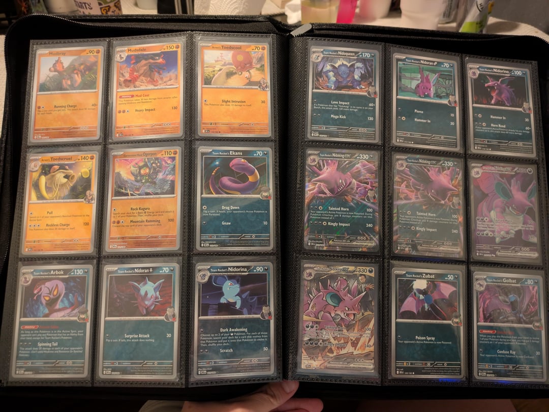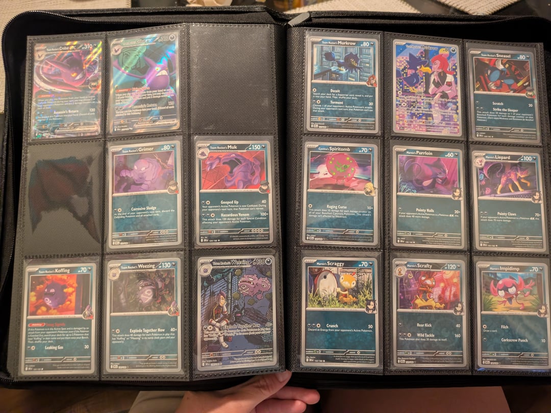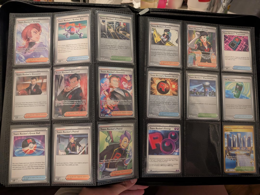 I started collecting again for the first time since I was a child because I love team rocket. my boyfriend is the only person I know in the hobby and I just really wanted to share what I've collected so far. I love just looking through the pages of my binder. I know it is set up weird but it's the way I like to enjoy my cards. thanks for letting me share. I will post the completed set when I eventually pull or buy every card