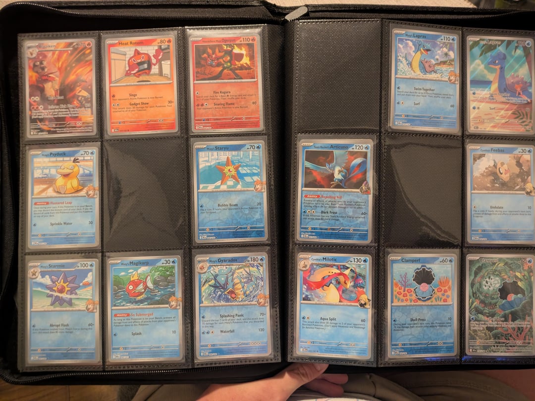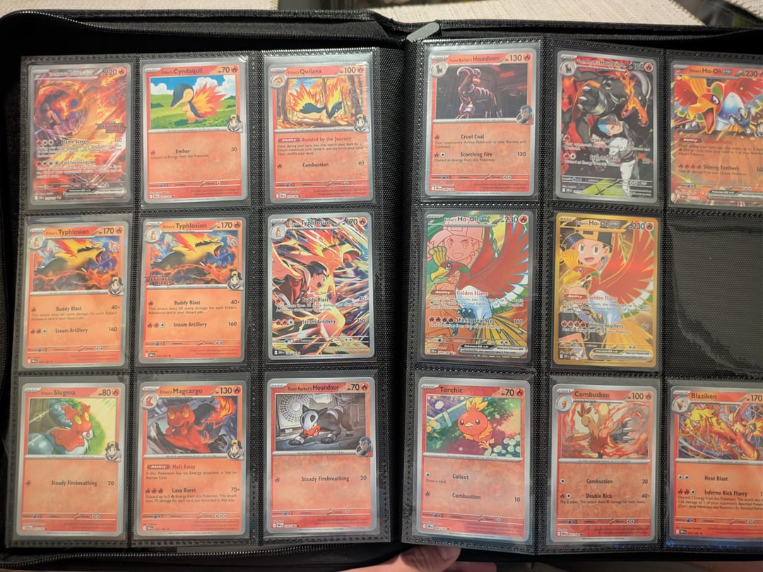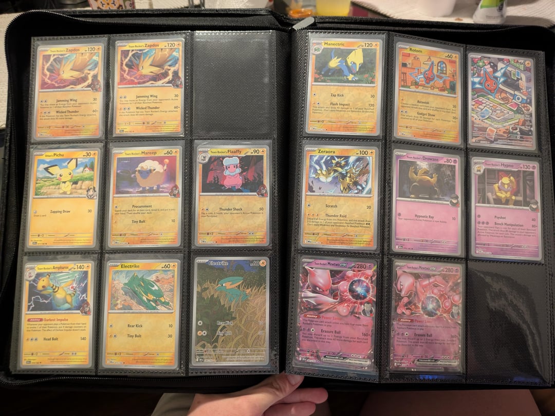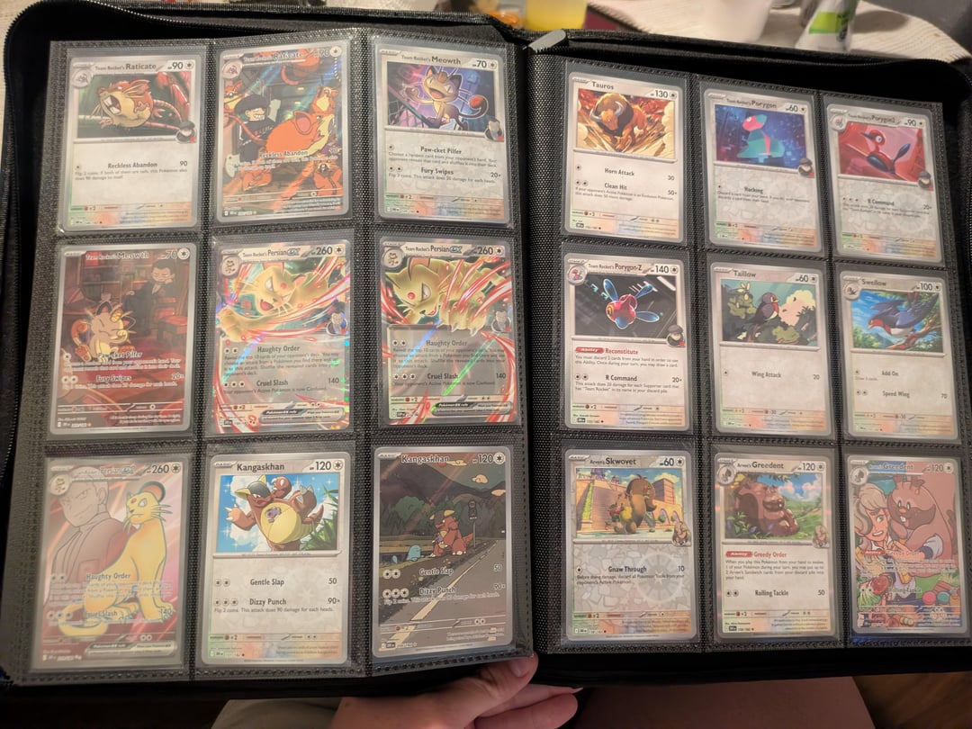 I started collecting again for the first time since I was a child because I love team rocket. my boyfriend is the only person I know in the hobby and I just really wanted to share what I've collected so far. I love just looking through the pages of my binder. I know it is set up weird but it's the way I like to enjoy my cards. thanks for letting me share. I will post the completed set when I eventually pull or buy every card