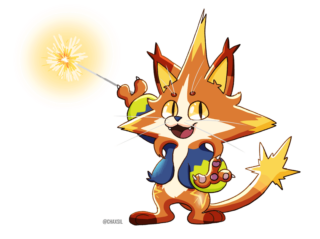 Hundreds of years ago, there was a village in the north of what is now known as Arauka. Its people were called the Fenti. In short, they were a sad people. Even though their village was full of salt—a very valuable mineral at the time—the place was dry and had little to see or enjoy.One night, a small Pokémon arrived, orange and blue in color. It danced through the streets of the village, waving sticks that sparkled with sparks. When the villagers saw it, they began to laugh and celebrate all the good things they had. From that day on, the Fenti started to worship this Pokémon and named it Festilux, which means "luminous party" or "festival of light."It is said that Festilux still appears from time to time in the lands where the village once stood. Even today, it has the power to bring happiness to anyone who sees it.This story is not about being conformist. It’s about this: if you feel trapped and sad because of your current life, you should stay cheerful and look for happiness in the small details—like a little Festilux dancing through the streets, waving its sparkling sticks.