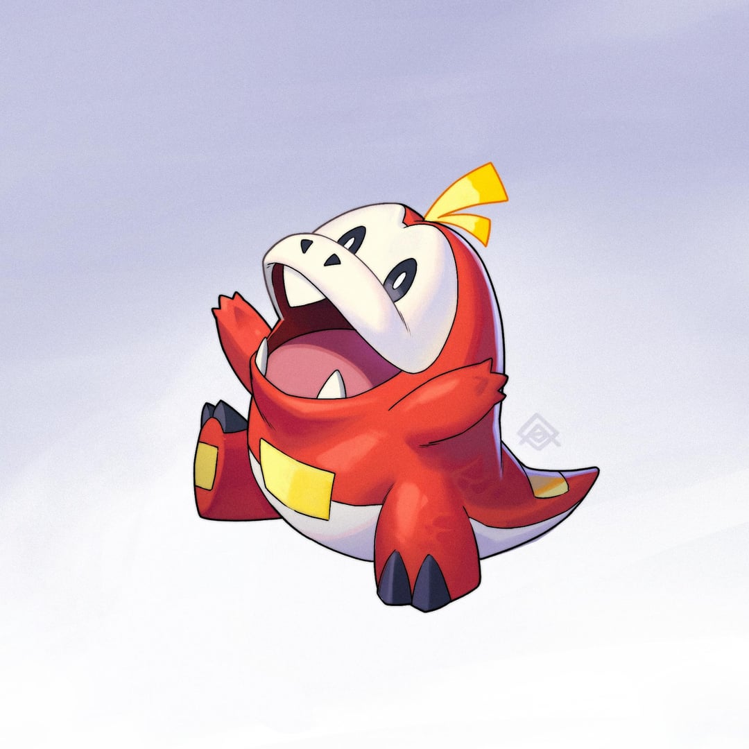 Fuecoco – My partner in Gen 9! One of my favourite Fire Pokemon starters mostly because it has a really nice typing when it evolves into Skelledirge and IT'S [Skelledirge] NOT BIPEDAL.