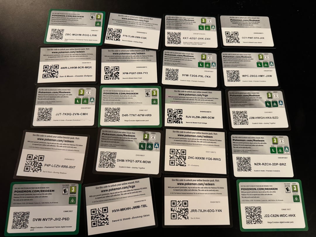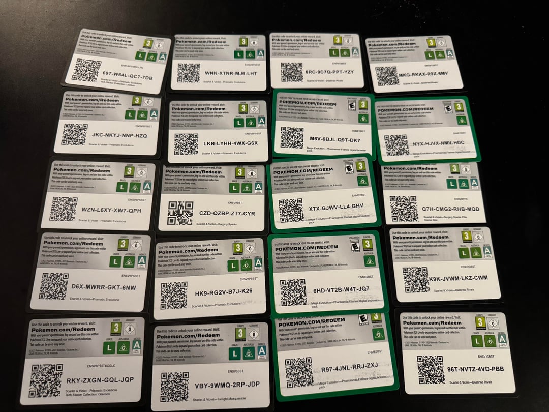 I’ve attached another 4 photos with a handful of codes. Will upload some more in a few days assuming this doesn’t get taken down by mods. I can’t bring myself to just toss them so this situation feels like a win win. 🤷♂️ Enjoy the cosmic eclipse single code in there lol
