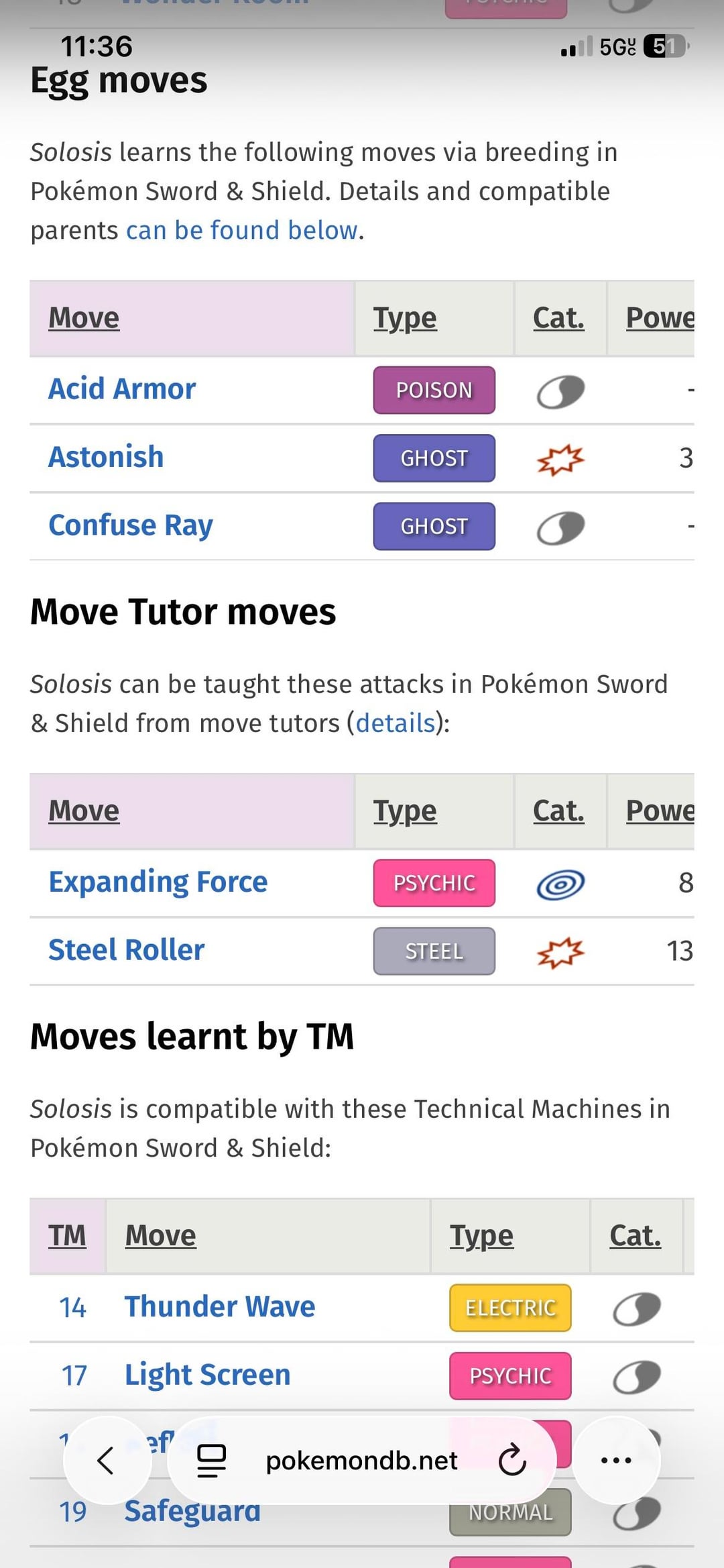 Yknow, one of my favorite pastimes is looking up the learnset of some of my favorite pokemon and seeing what odd moves it can learn in each generation. I looked up my baby boy Solosis and was not dissapointed. I’ve known that from Gen 5-7, it can learn Explosion. But I just learned that in Gen 8 only, it can learn STEEL ROLLER! I’m sorry!? I know that the Solosis line isn’t particularly physical but it can learn a surprising amount of pretty decent physical moves. I guess if you wanted a physical Solosis, Duosion, and Reuniclus… for whatever reason, you are covered!